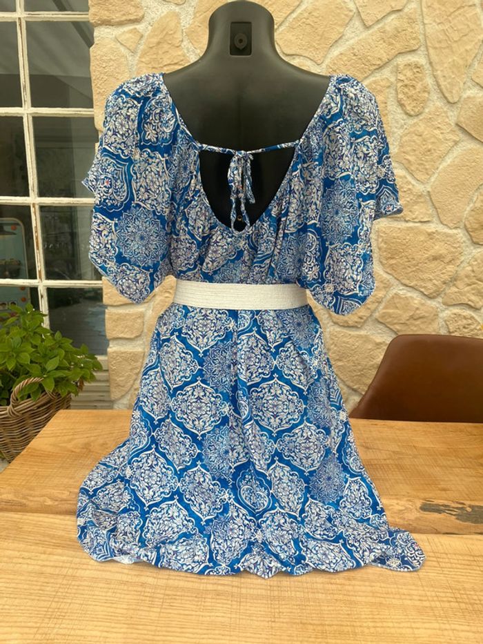 Robe d’été dos nu made in italy bleu blanche fleurs taille S M 36 38 T.U