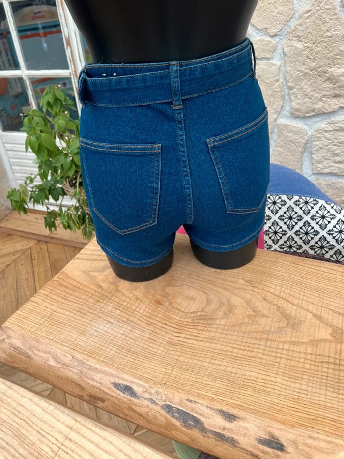 Jennyfer Short femme taille S 36 bleu marine brut avec ceinture été - photo numéro 4