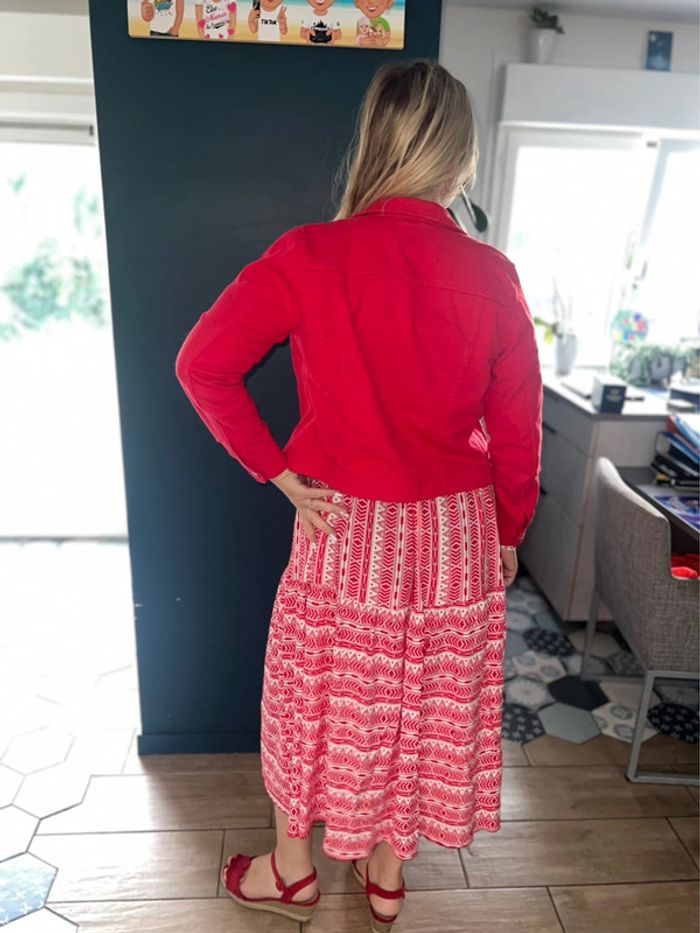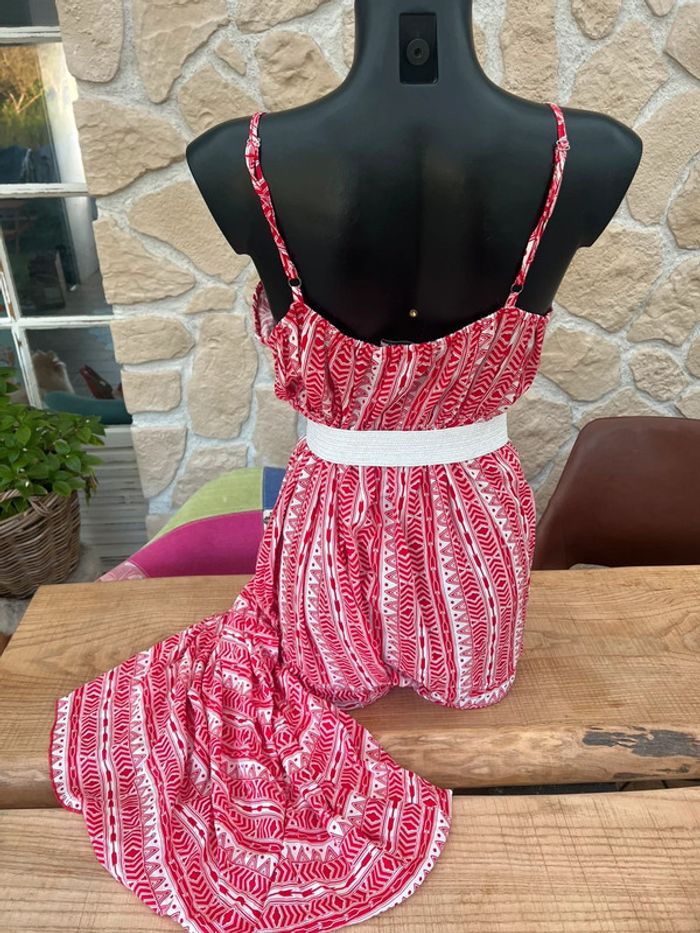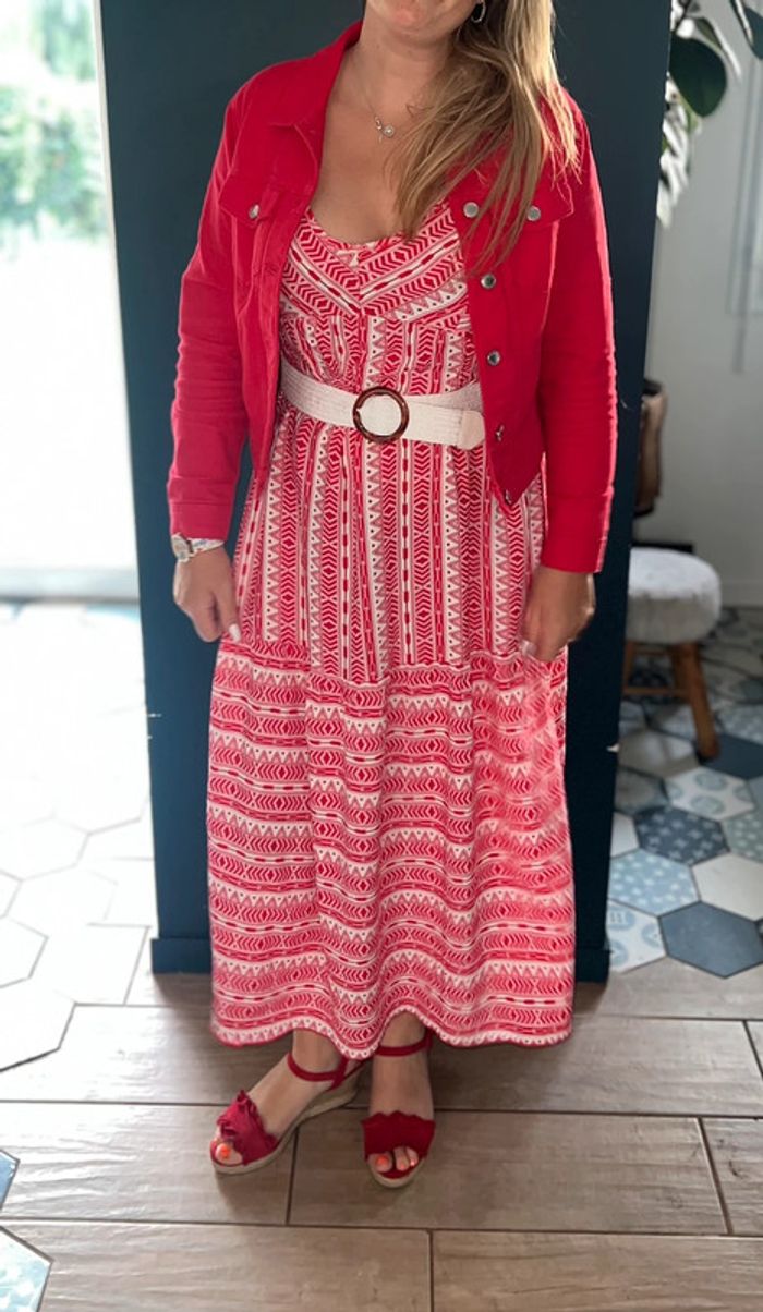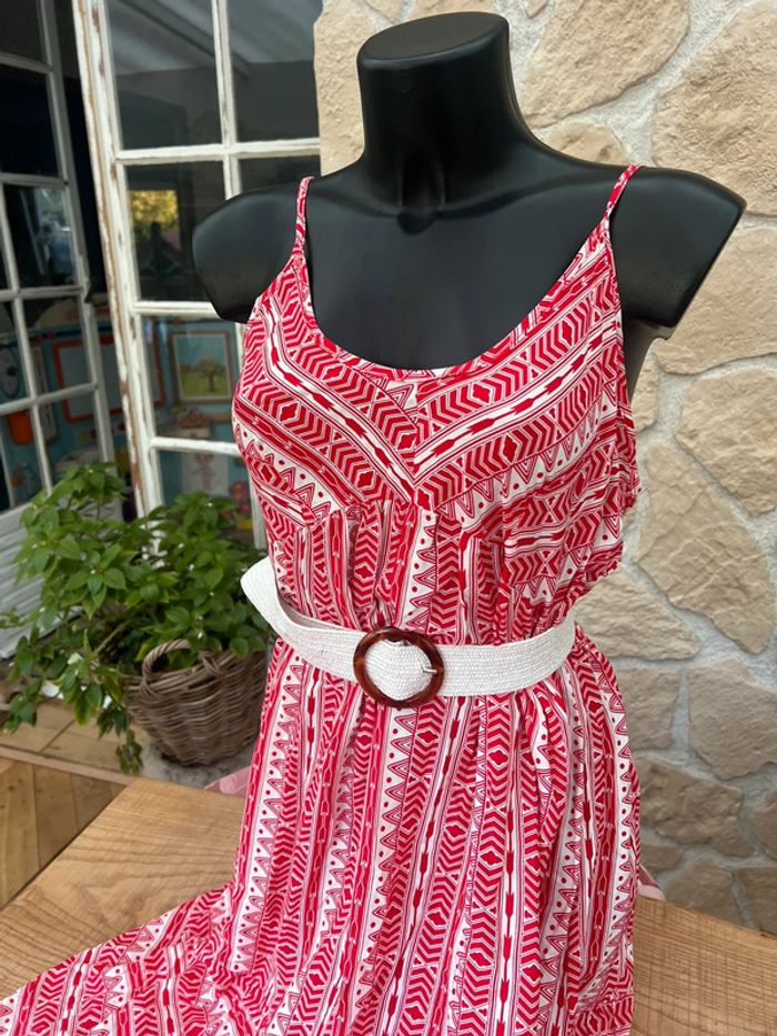 Robe longue femme Parfaite pour l’été Taille 2XL 3XL mais convient du L - XL au 2XL / 40 42 / 44 Bretelles réglables Rouge et blanche Marque Smiton achetée en boutique indépendante Vendue sans la ceinture Je mesure 1m74