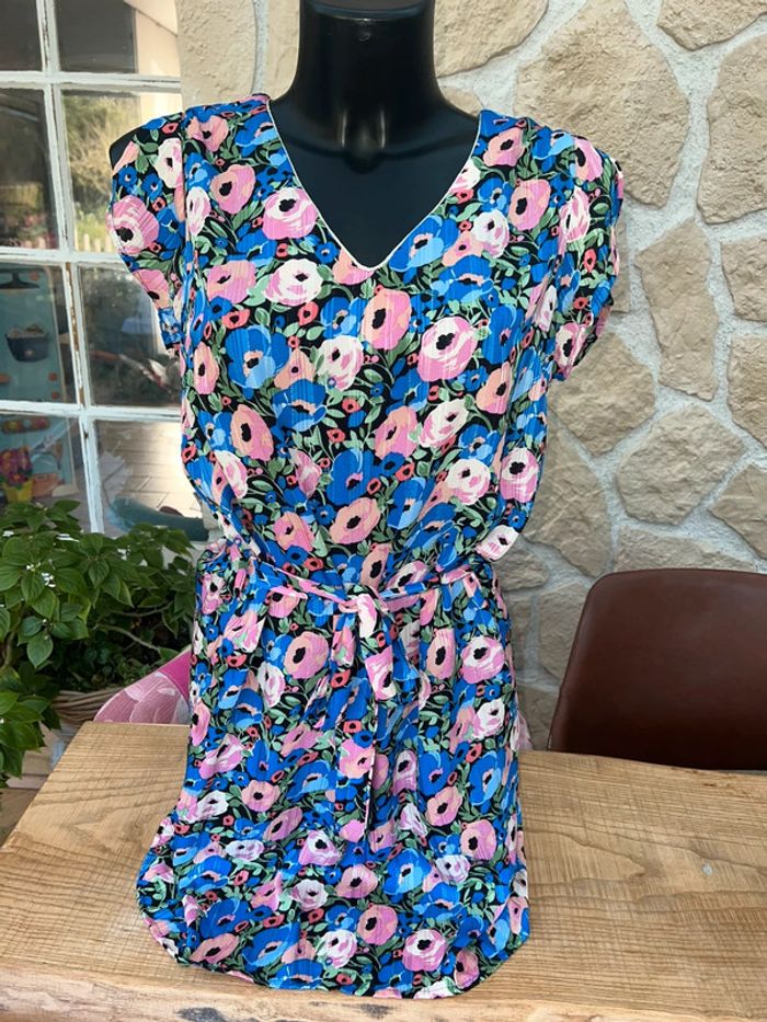 Robe d’été bleu et rose a grosse  fleurs Noémie & co M 38