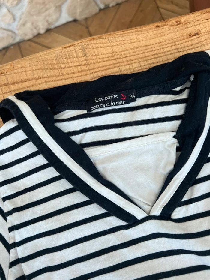 Ensemble 8 ans marine veste gilet  matelassée à capuche t-shirt marinière - photo numéro 6