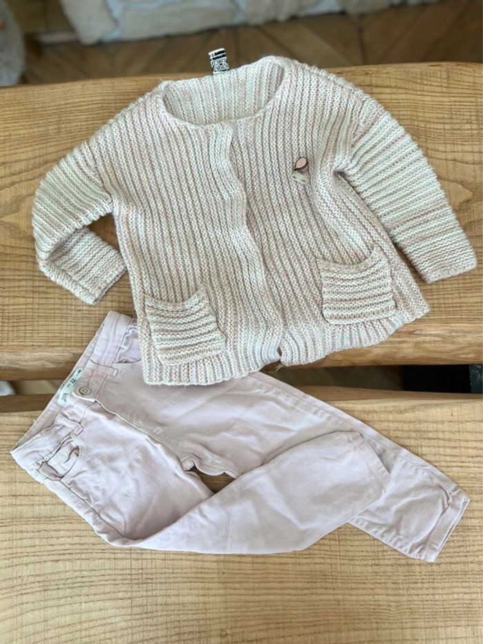 Ensemble 2 - 3 ans jean slim Zara rose gilet en laine tape à l’œil - photo numéro 1