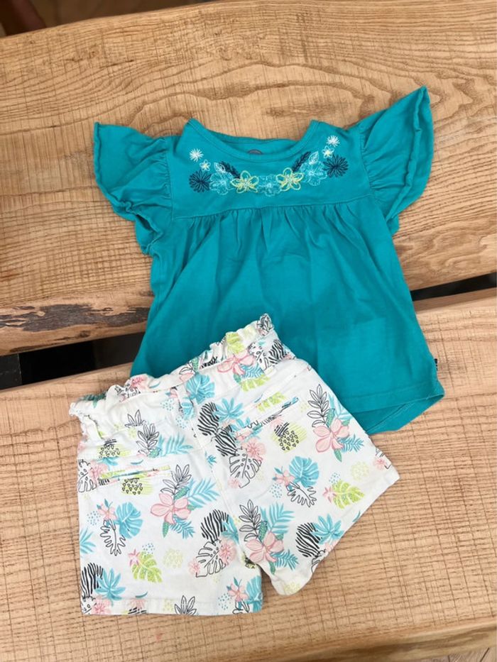 Ensemble 5 ans En très bon état T-shirt la compagnie des petits short orchestra Bleu à motifs floral