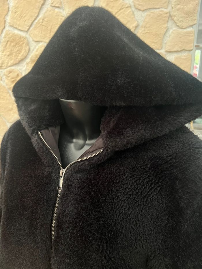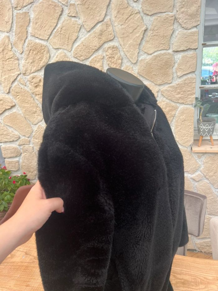 Mango Zara Manteau fausse fourrure noire long à capuche taille S / 36 hiver chaud femme - photo numéro 4