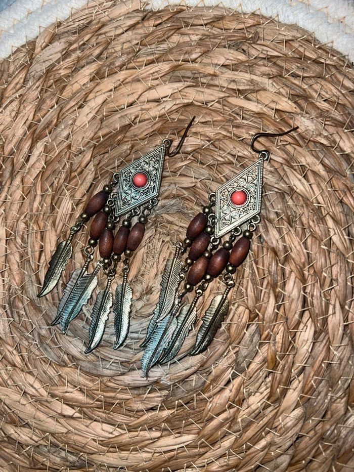 Boucles d’oreilles pendantes femme doré fantaisies plumes