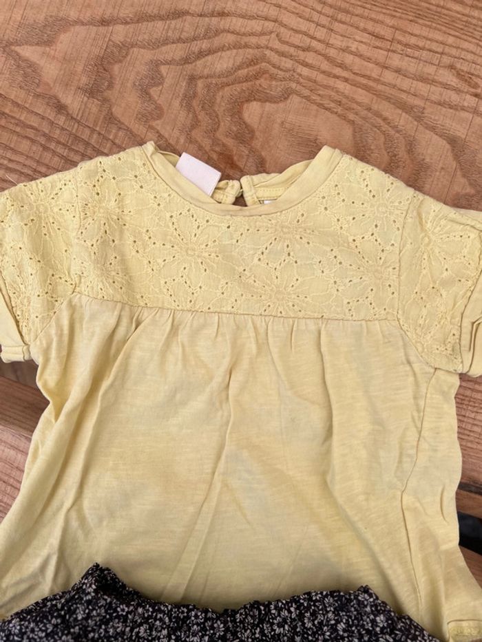 Ensemble T-shirt Zara 3-4 ans Tbe jaune pale avec broderies Jupe 3 ans Little cigogne doublée et qui ne nécessite pas de repassage motif floral Salopette short en jean motif pâquerettes offerte car tracew de délavage d’un autre vêtement reste discret