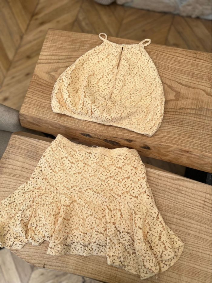 Ensemble Zara été bohème, dentelle 13-14 ans 13 14 top t-shirt cérémonie  jupe - photo numéro 1