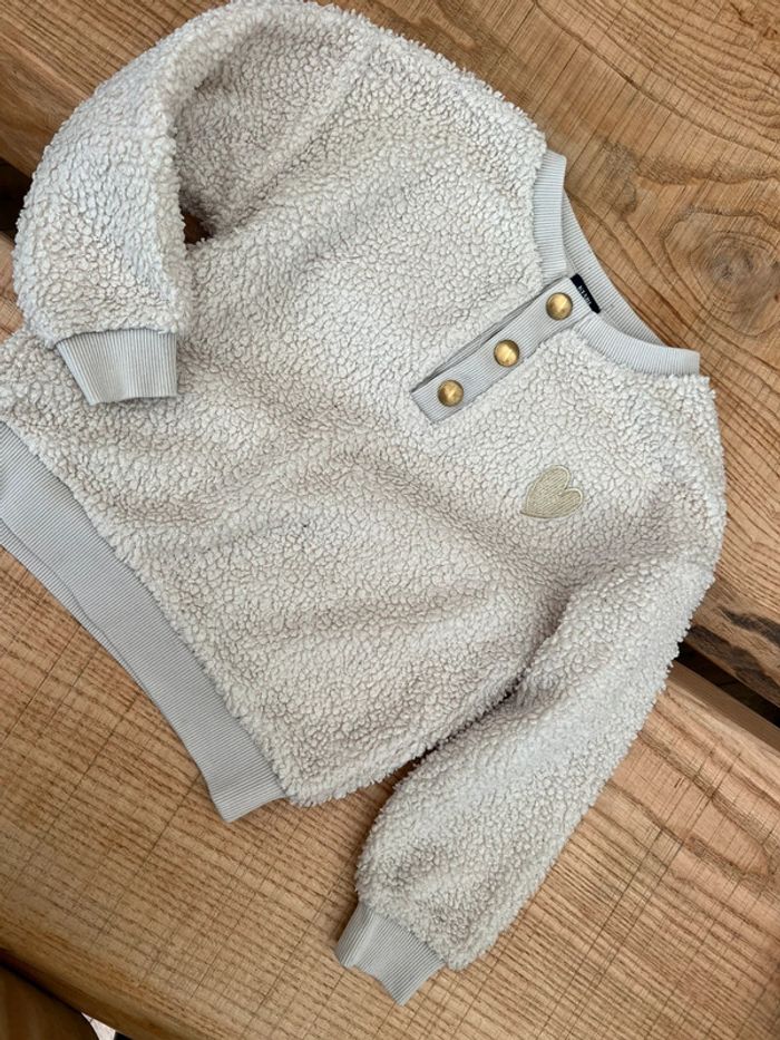 Pull sweat mouton kiabi taille 5 ans hiver crème cœur fille - photo numéro 1