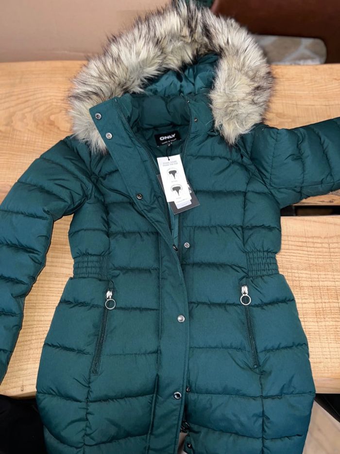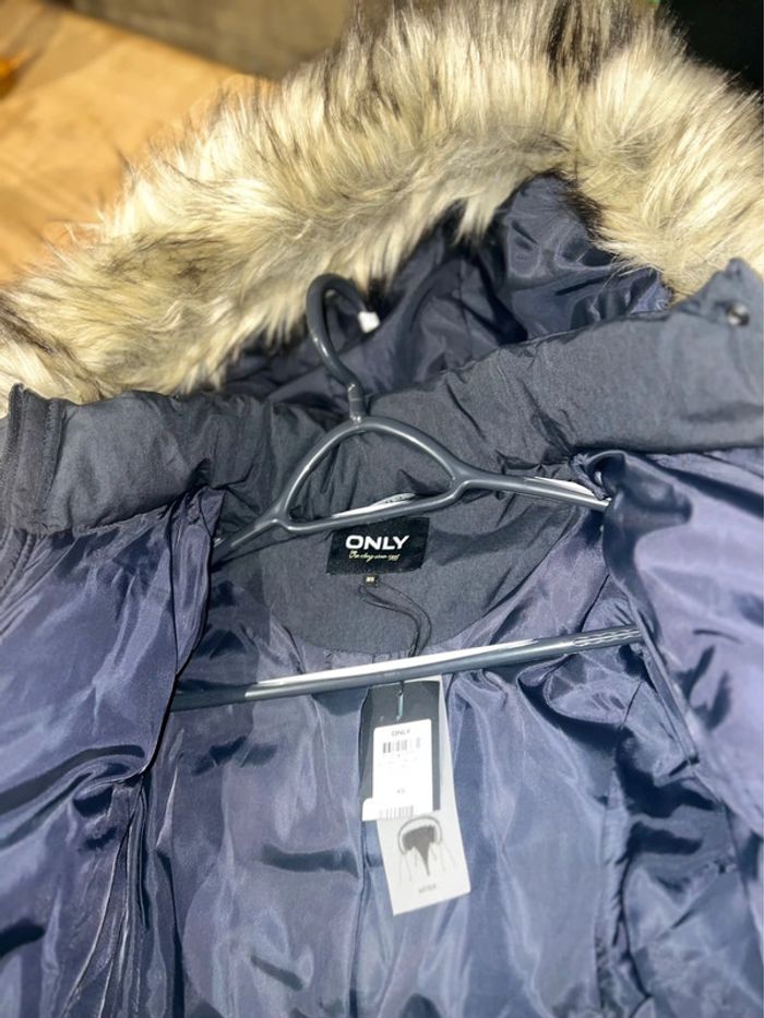 Manteau parka 14 ans doudoune longue chaud hiver capuche fourrure XS 34 only femme gris neuf - photo numéro 3