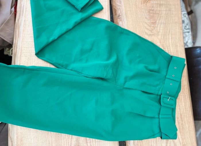 Ensemble tailleur veste pantalon vert taille haute ceinture blazer 38 - photo numéro 3