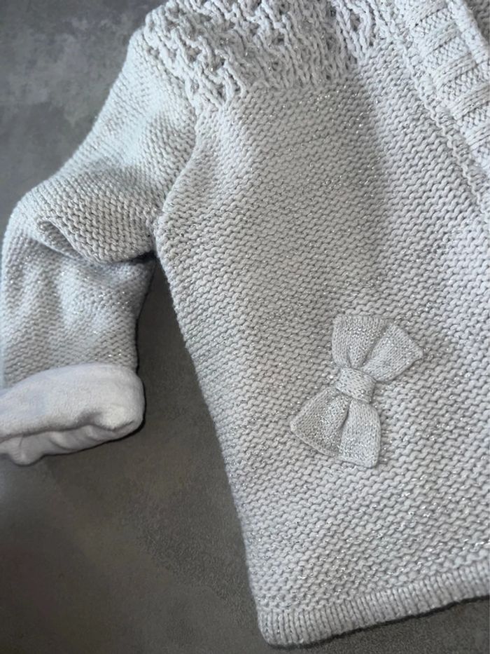Manteau gris gilet épais hiver neuf gemo taille 6 mois blanc gris paillettes - photo numéro 4
