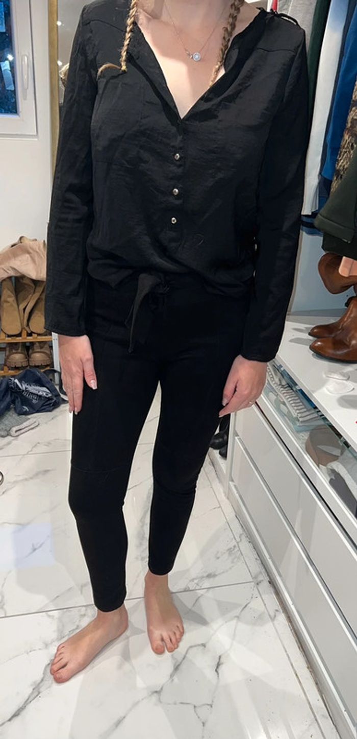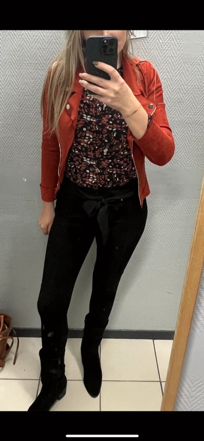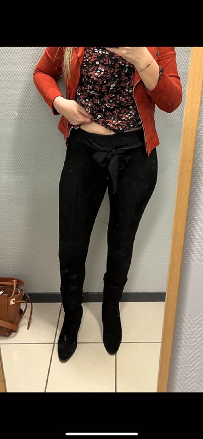 Pantalon taille 36 / 38 Matière toute douce type suédine / daim Très moulant Avec ceinture à la taille (Une couture légèrement défaite sur un des genoux) Acheté en boutique en ligne