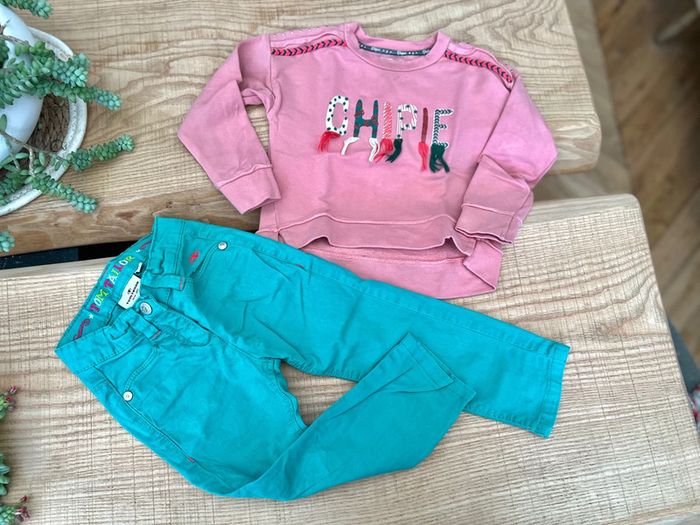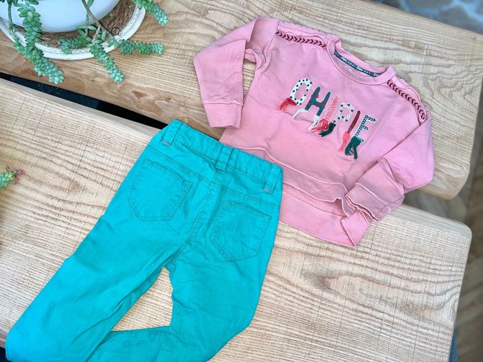 Ensemble Taille 2-3 ans Sweat leger rose (plus flashy que les photos) chipie (légère trace au col voir photo 3) Slim vert top taylor tbe