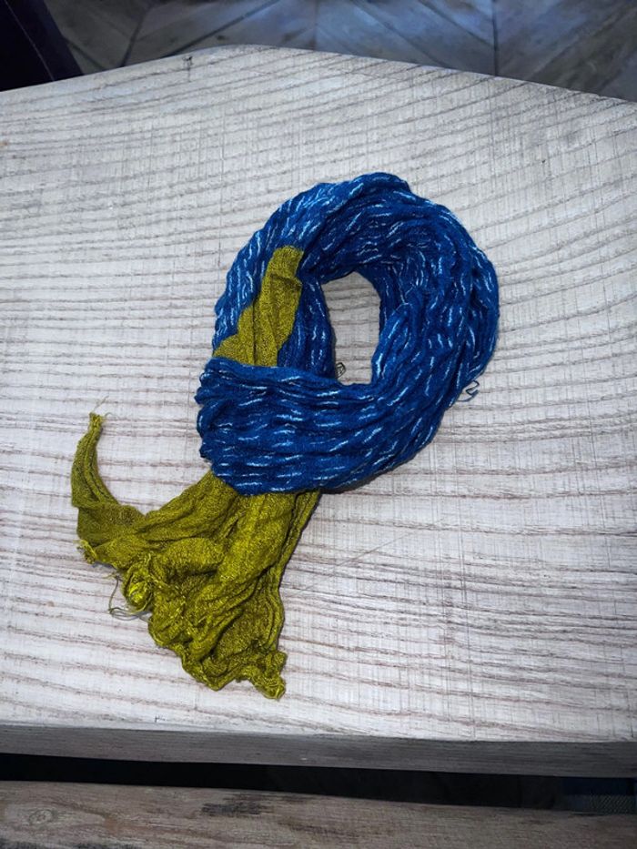 Chèche foulard Zara 0 - 4 ans bleu jaune moutarde
