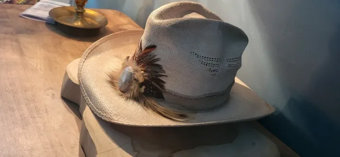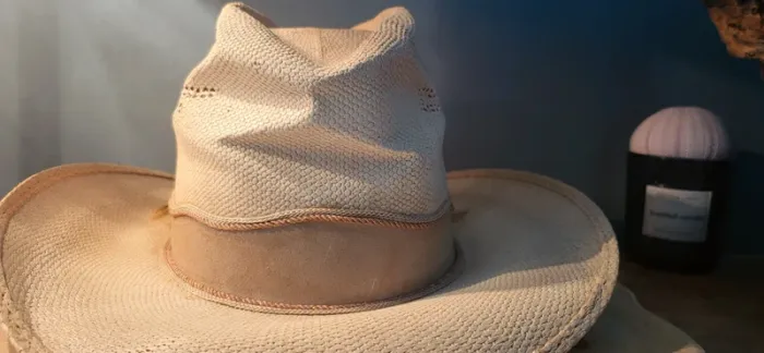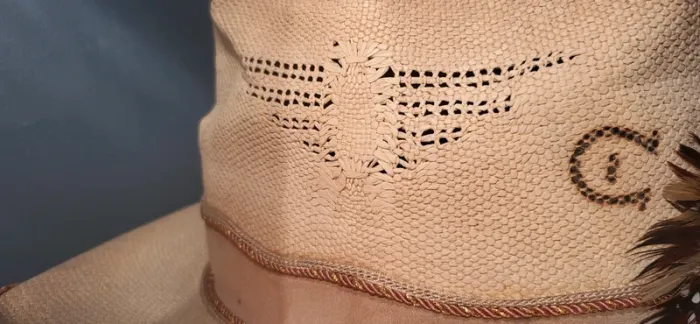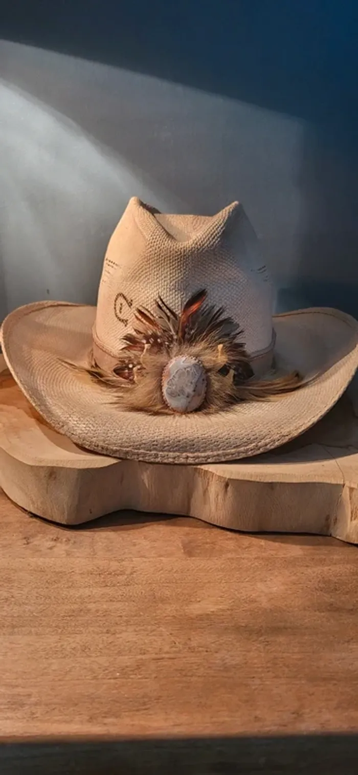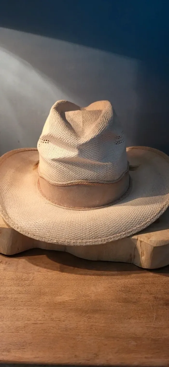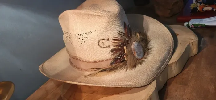 Pièce rare et pleine de caractère, ce chapeau vintage Charlie 1 Horse est une édition spéciale NASCAR 43, en paille naturelle, avec un bandeau décoratif orné de plumes et d’un médaillon central. Taille 6 3/4 (équivalent à ~54 cm), idéal pour les amateurs de style western authentique et les collectionneurs. 🔹 Marque : Charlie 1 Horse 🔹 Modèle : NASCAR 43 – Édition spéciale 🔹 Matériau : Paille naturelle 🔹 Taille : 6 3/4 (~54 cm) 🔹 État : Vintage, très bon état 🔹 Détails : Bandeau avec plumes, ornement central, logo intérieur Charlie 1 Horse 🔹 Rare : Pièce difficile à trouver, idéale pour collection ou look affirmé "Chapeau vintage Charlie 1 Horse NASCAR 43 – taille rare 6 3/4. Un bijou western en paille naturelle, orné de plumes et d’un médaillon central. Pour les esprits libres, les passionnés de style et les collectionneurs exigeants."
