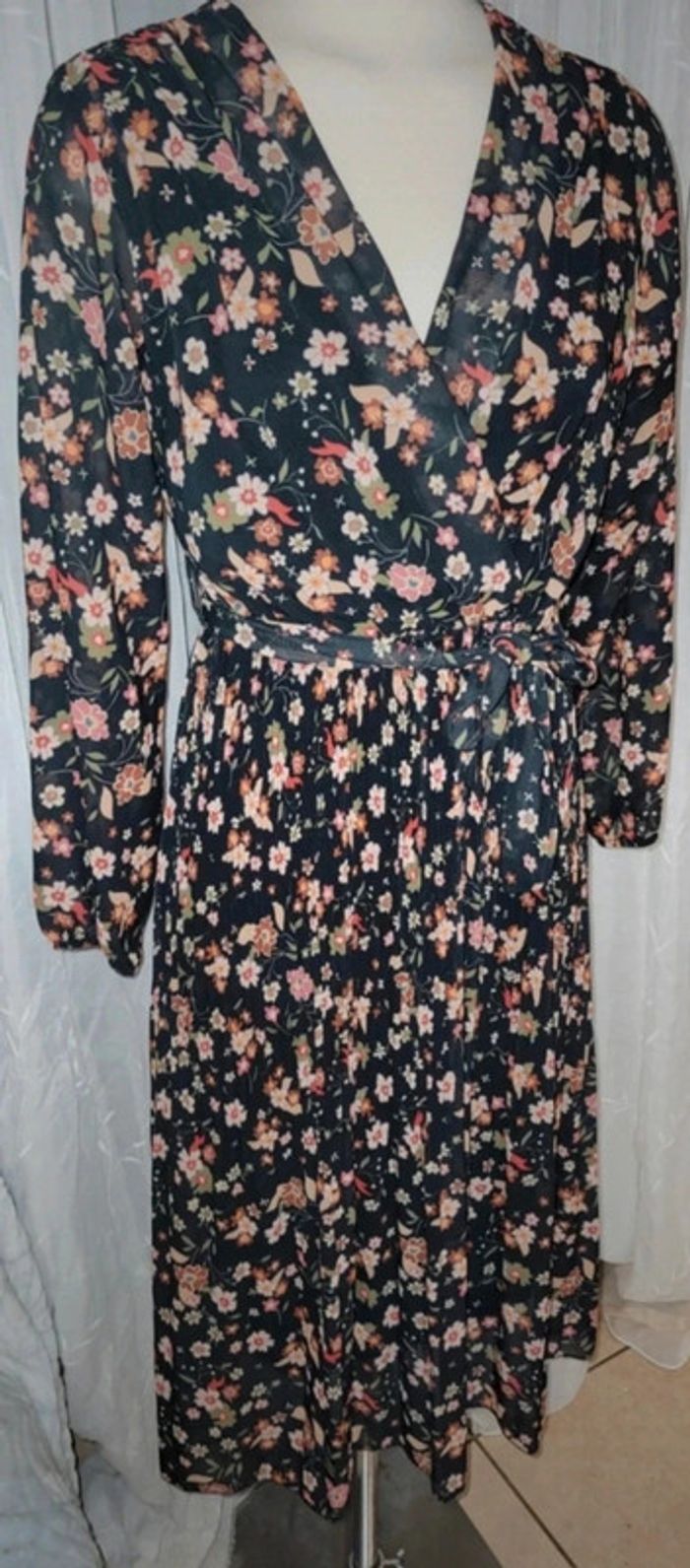 Magnifique robe longue fleurie plissé Taille 36 Manches longues transparente Ceinture assortie . N'hésitez pas à faire le tour de mon dressing j'ai pleins d'autres vêtements à petits prix #a2life_taille36