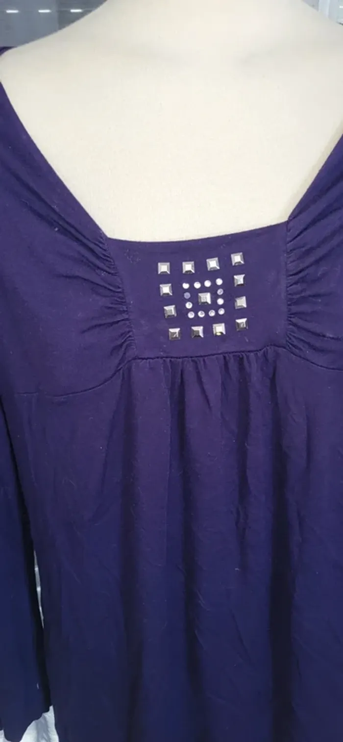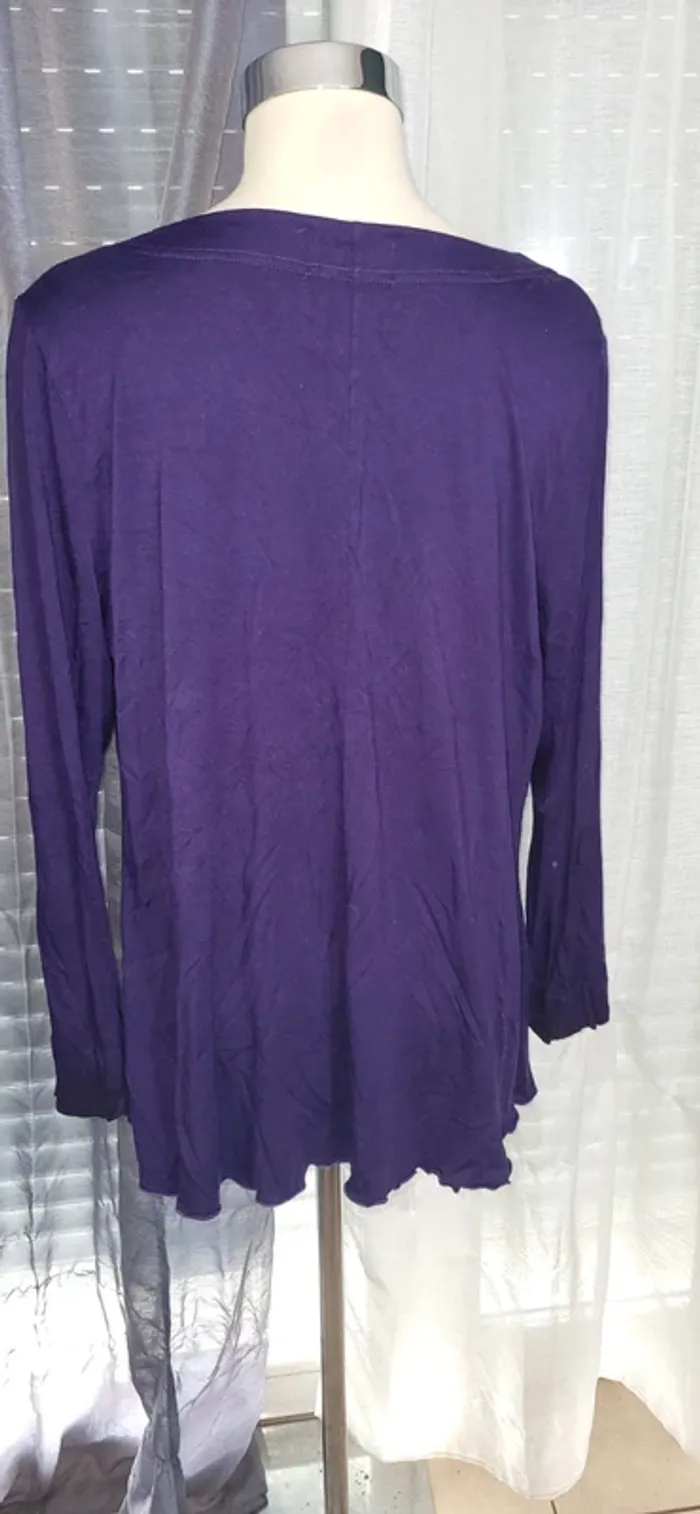 🟣 Haut violet à manches longues – Détail carré élégant - photo numéro 2