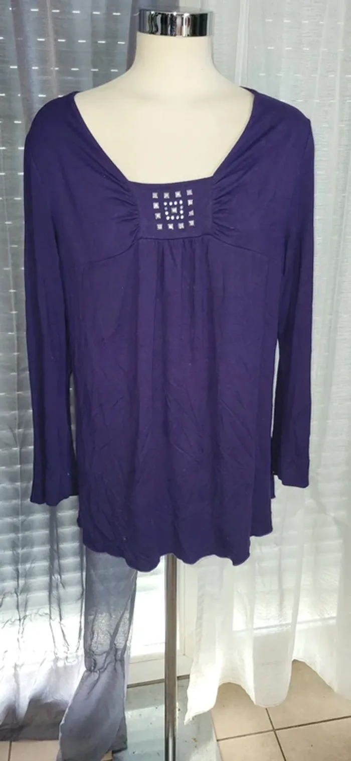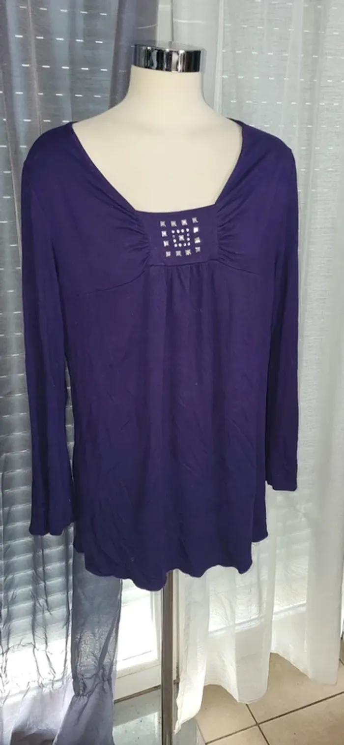 🟣 Haut violet à manches longues – Détail carré élégant - photo numéro 1
