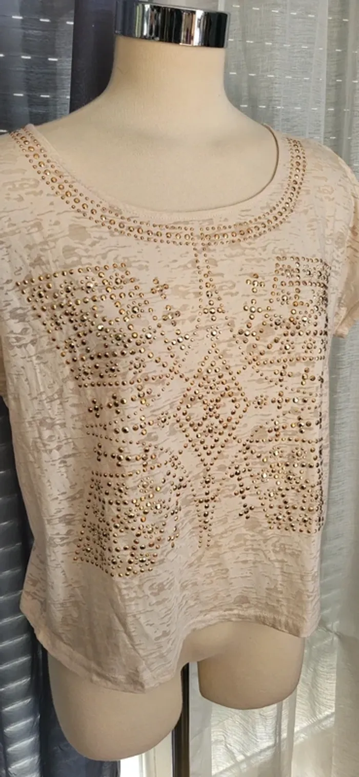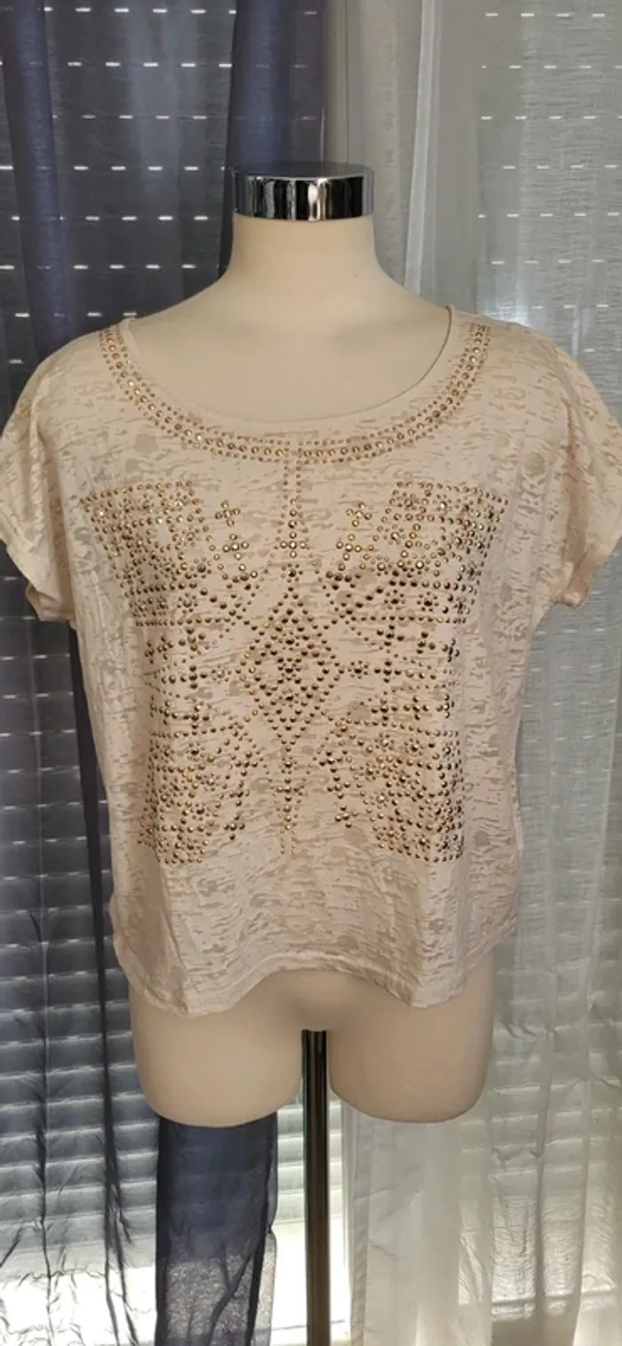 Haut beige à perles dorées – Élégant et raffiné - photo numéro 1