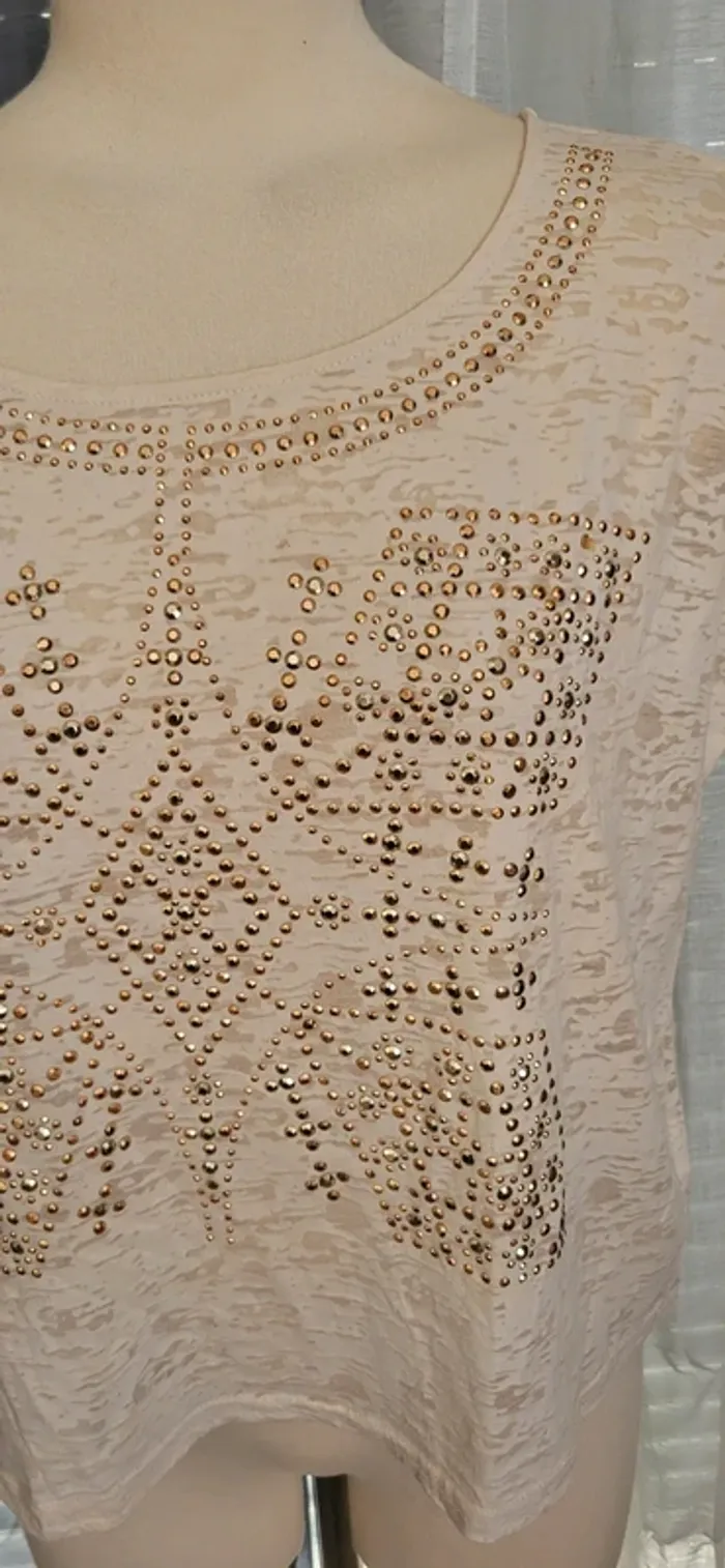 Haut beige à perles dorées – Élégant et raffiné - photo numéro 3