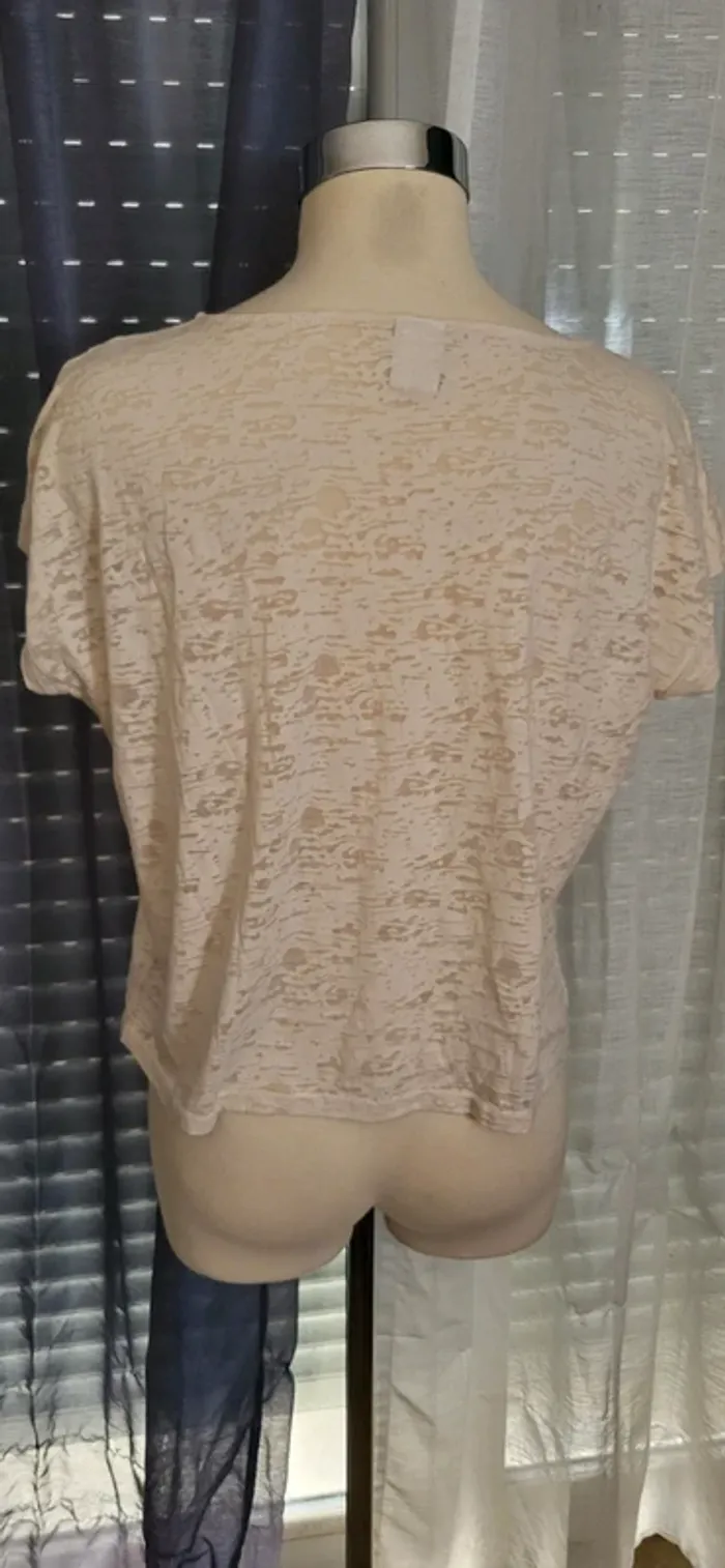 Haut beige à manches courtes, orné d’un superbe motif géométrique en perles dorées sur le devant. Très chic et original, il apporte une touche sophistiquée à n’importe quelle tenue. ✨ Détails : - Taille : S - Matière légère et agréable à porter - avec perles dorées - Excellent état Parfait pour une soirée, un événement ou même pour rehausser un look quotidien avec élégance. Pleins d'autres vêtements à petits prix #a2life_taille36