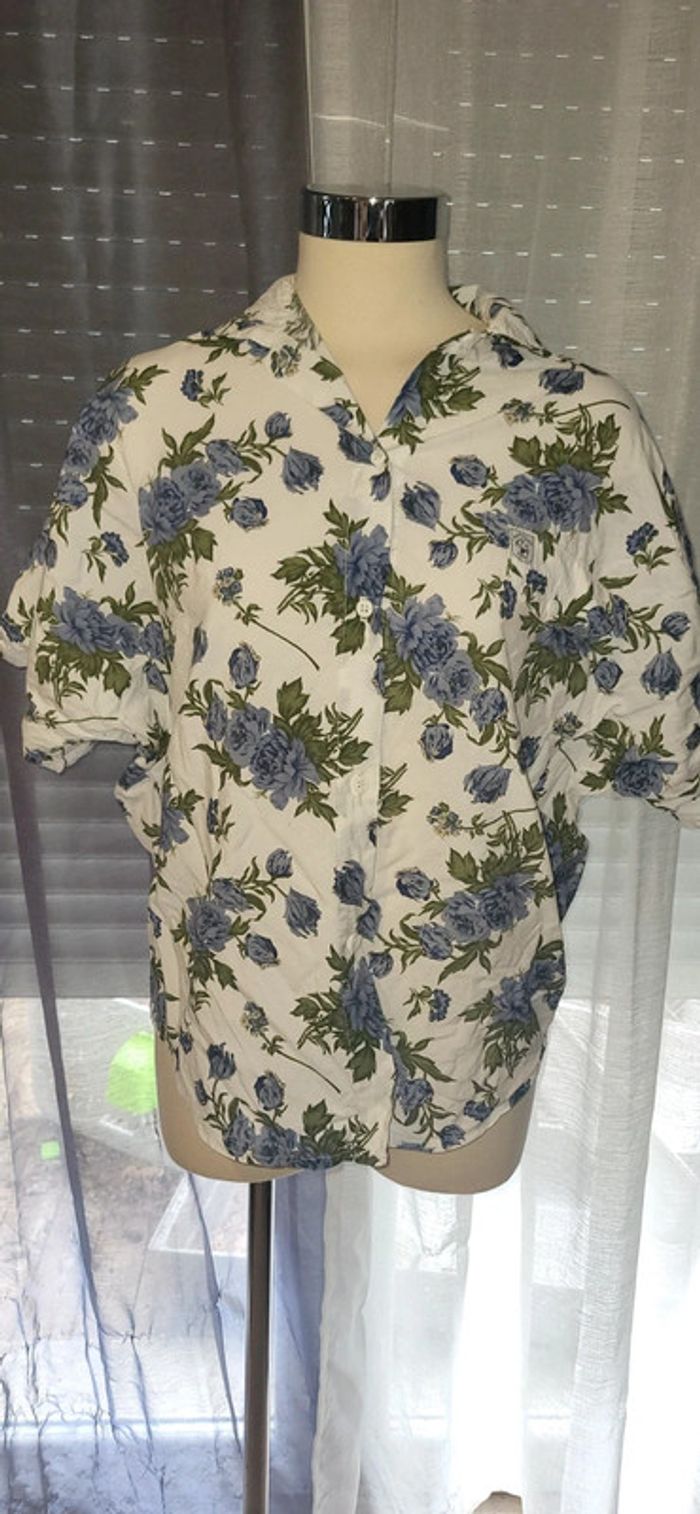 🌼 Chemise fleurie blanche et bleue - Élégante et fraîche - photo numéro 1
