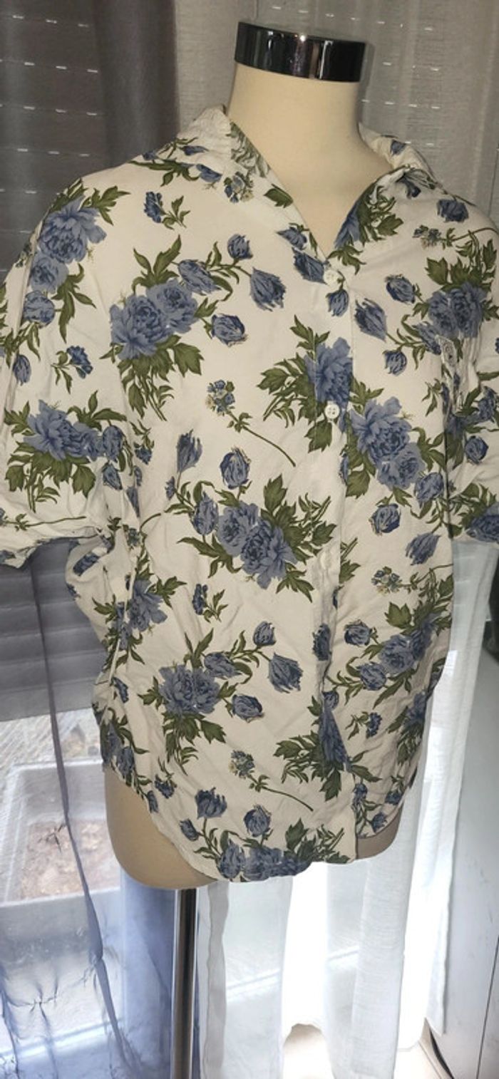 🌼 Chemise fleurie blanche et bleue - Élégante et fraîche - photo numéro 3