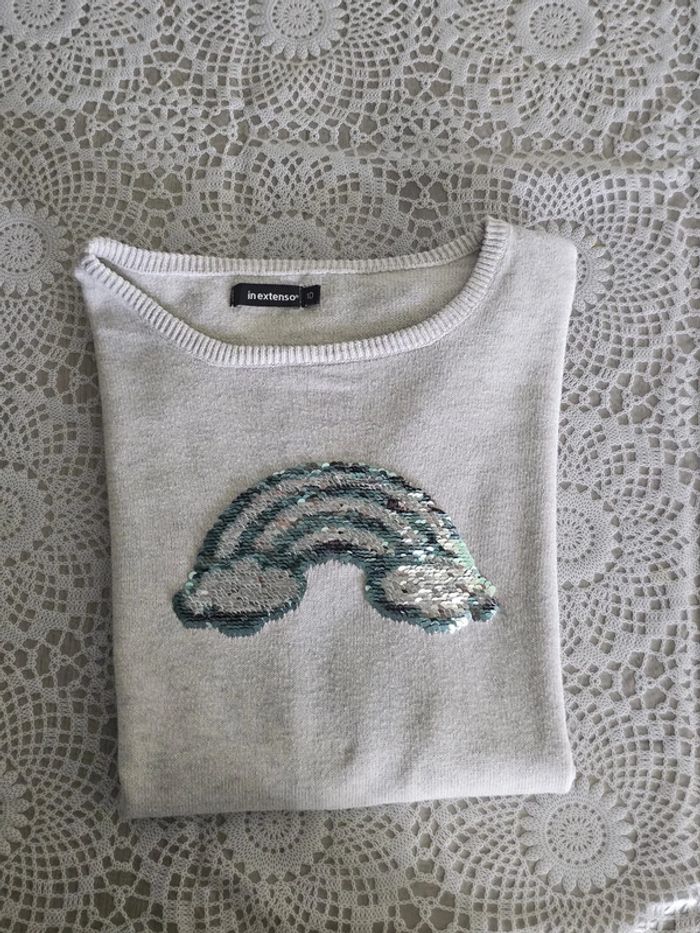 Pull fille In Extenso 10 ans 🌈✨ Motif arc-en-ciel en sequins réversibles ✨💫 Gris clair doux et confortable – parfait pour l’automne/hiver ❄️👧 Porté très peu, en excellent état 🆕👌 Lavé propre ✅ aucun trou ❌🕳️ aucune tache 🚫🧼 Maison non fumeur 🚭 sans animaux 🐾❌ Envoi rapide et soigné 📦💨 (en max 48h hors week-end ⏳ colis postés le lundi 📬) 🔍 Envie de voir mes autres annonces 10 ans ? Tape dans la barre de RECHERCHE ➡️ #MIMOUNETTE387FILLE10 🛍️👗 Plein d'autres vêtements dispo dans mon dressing 🧺👚 Alors pense à jeter un œil 👀 et abonne-toi ❤️ pour ne rien rater des nouveautés ! 📲🛒 #inextenso #pullfille #fille10ans #arcenciel #sequins #commeNeuf #envoierapideetsoigné #videDressingFille #mimounette387fille10 📸 L'état du produit ? Regarde la photo 👆👀