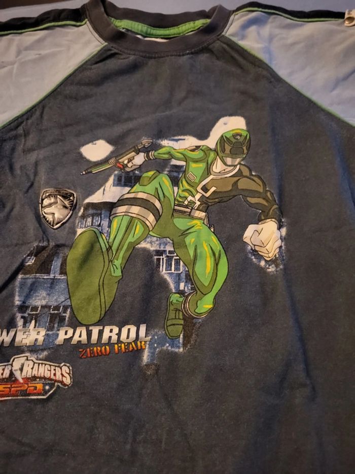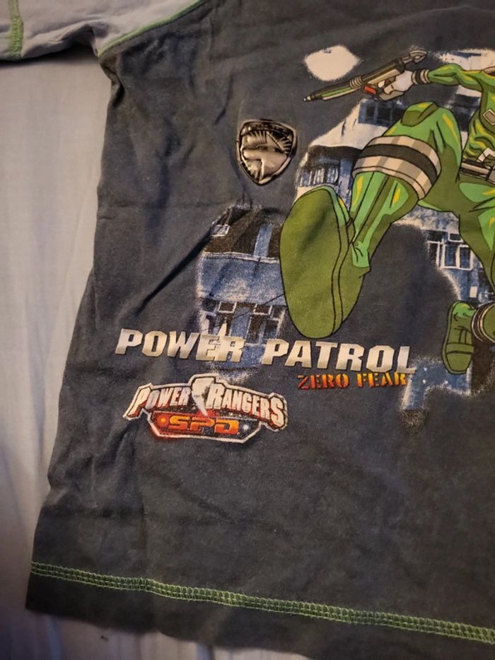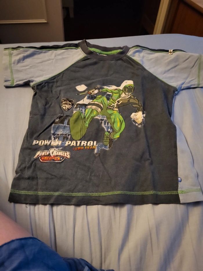 T shirt power rangers taille 6 ans , une petite tache d encre sur la manche voir photo .