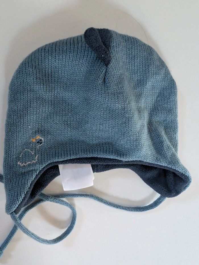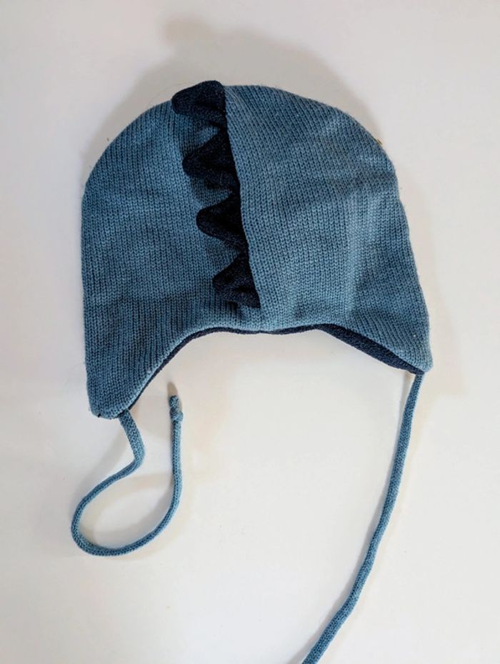 Je vends ce bonnet doublé polaire bleu dinosaure pour bébé mixte de taille 3 (48 cm), neuf de la marque Sergent Major.