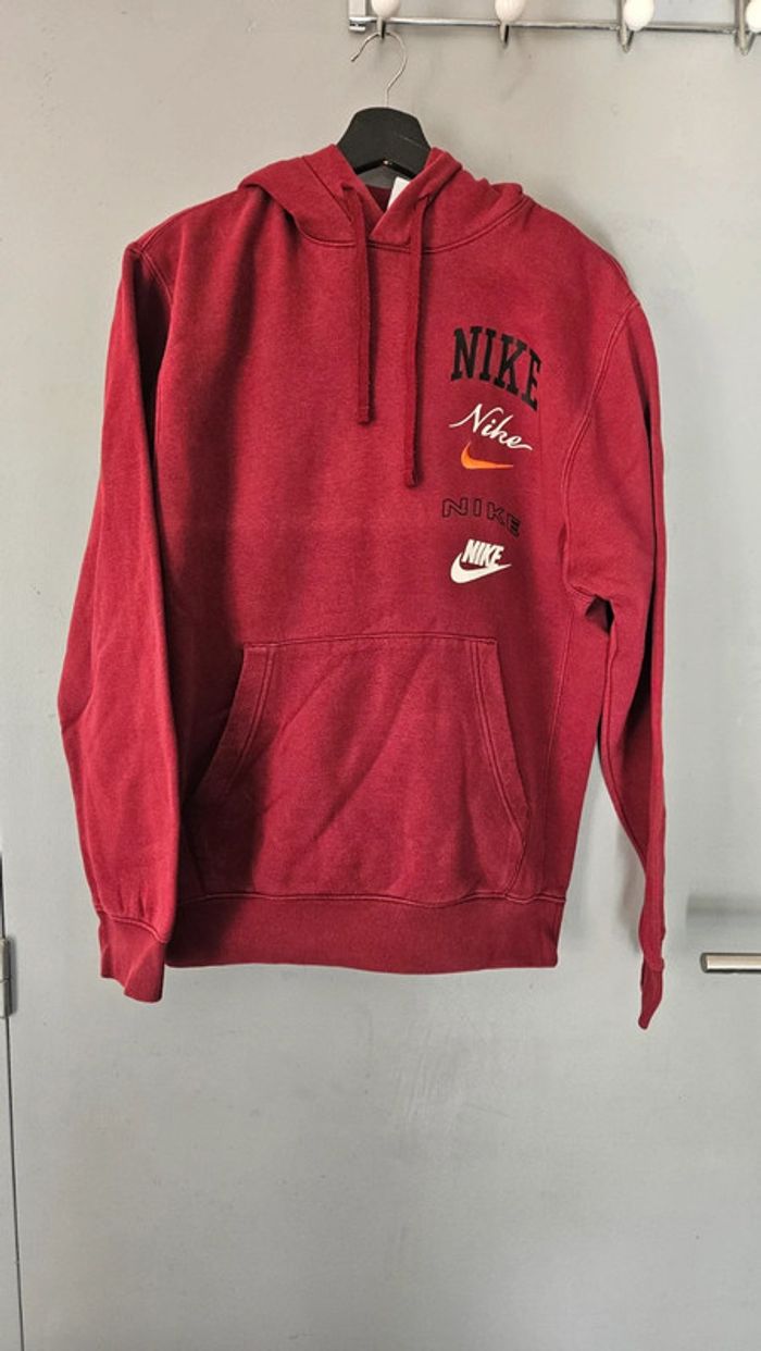 Sweat à capuche Nike, coloris bordeaux Design original avec plusieurs logos Nike imprimés et swoosh brodé orange sur la poitrine. Grande poche kangourou + capuche à cordons. Taille XS (convient 34/36). Matière : 80% coton – 20% polyester → intérieur doux et chaud. 👉 Bon état général, prêt à porter. #vanessavadhommexs #vanessavad14ans #nike #hoodienike #sweatcapuche #streetwear #multilogo #taillexs #bordeaux #rougefoncé #casual