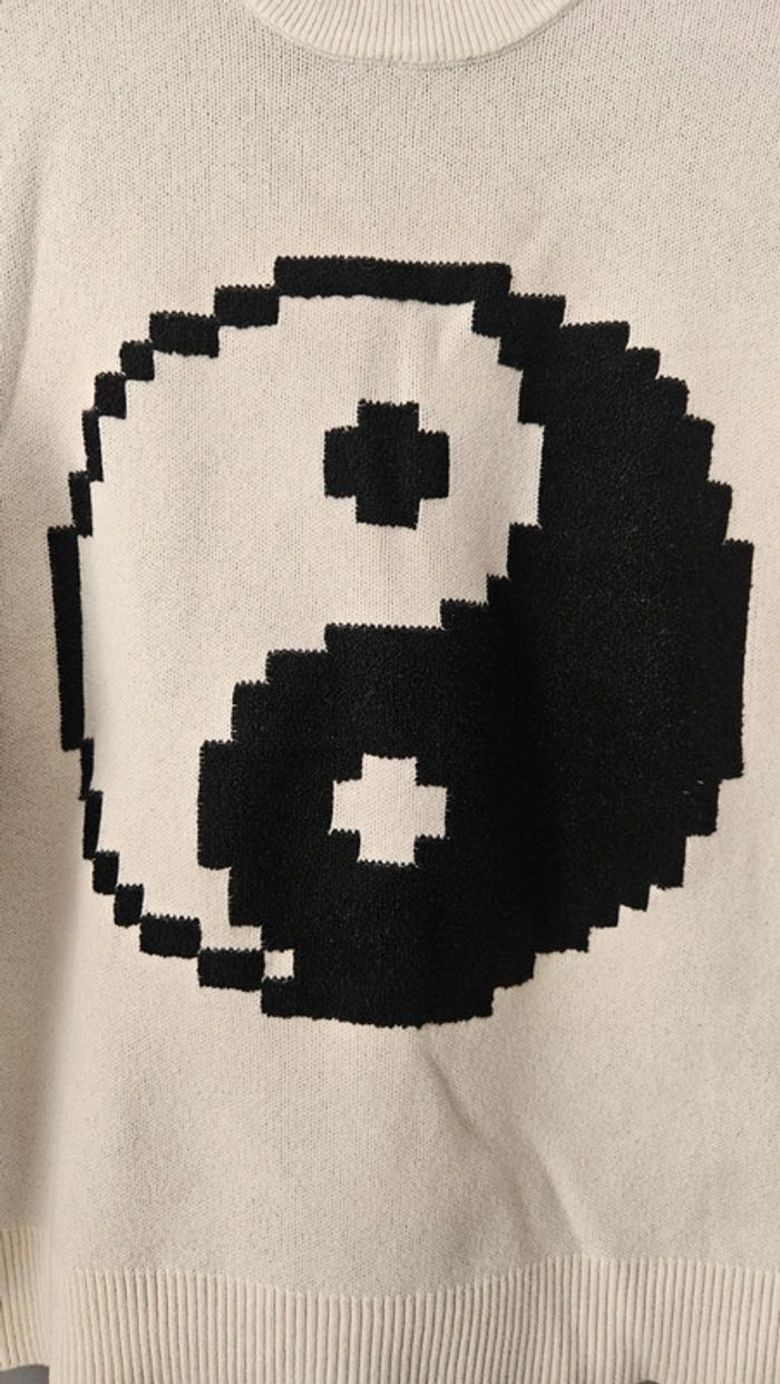 Pull Bershka Yin Yang écru et noir - Taille XS - photo numéro 1