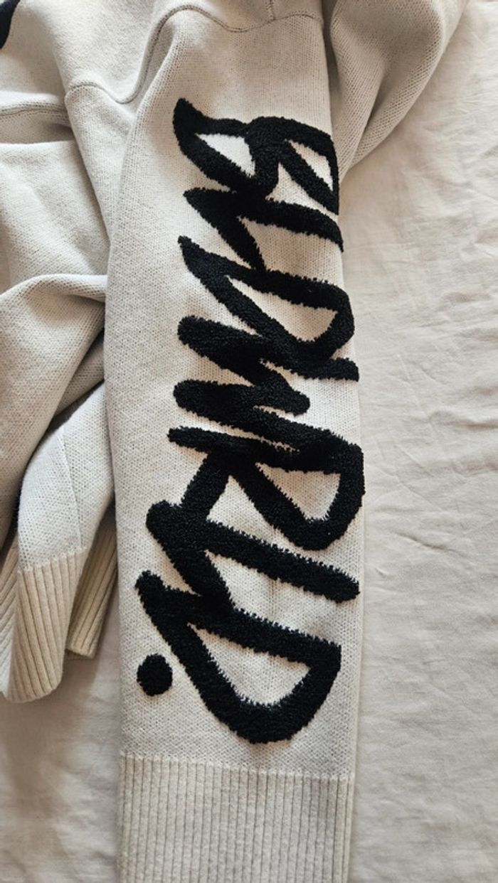 Pull Bershka, coloris écru avec grand motif Yin Yang pixelisé noir sur le devant. Manches avec inscription en noir en relief. Taille XS (34). Composition : 80% acrylique – 20% polyamide. Style streetwear / tendance, original et confortable. Très peu porté ✅ → excellent état. #vanessavadhommexs #vanessavad14ans #bershka #pull #yinandyang #streetwear #taillexs #ecru #noir #tendance