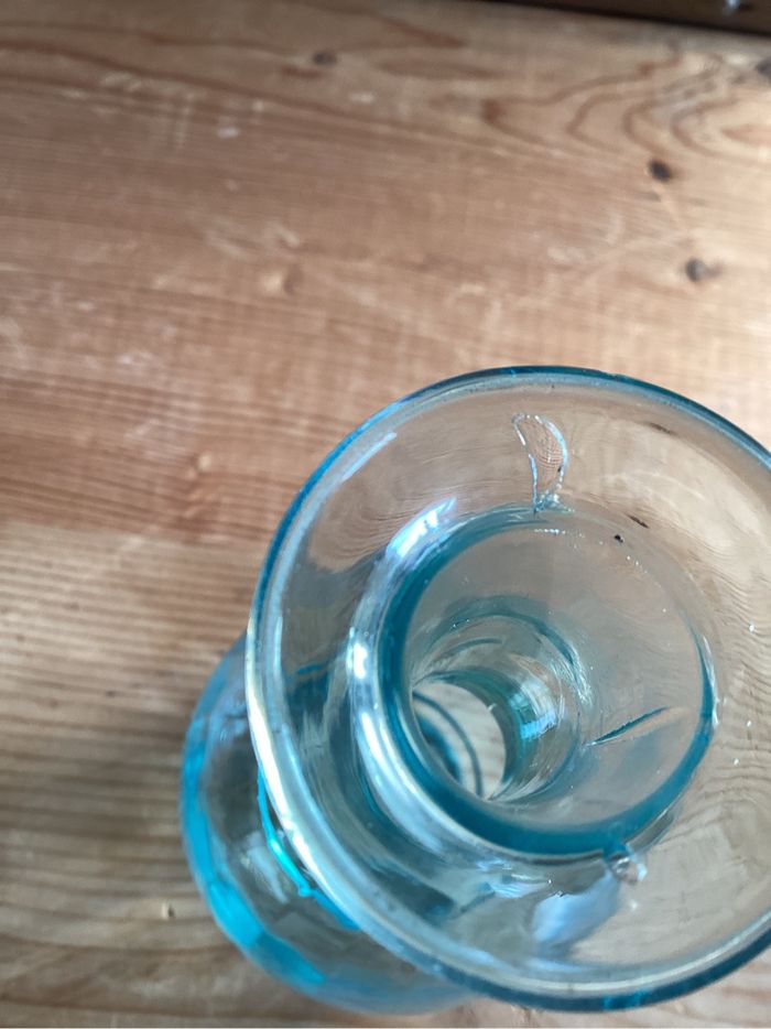Carafe bleue Traces d’usure d’usage 1 petit manque Le bouchon n’est pas d’origine