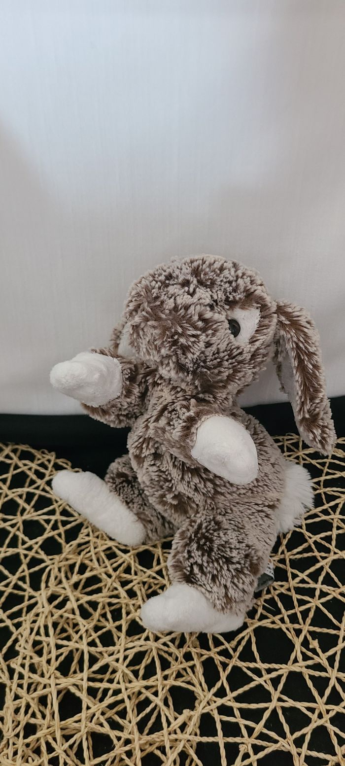 Peluche lapin CREATIONS DANI gris chiné poils longs 15 cm - photo numéro 1