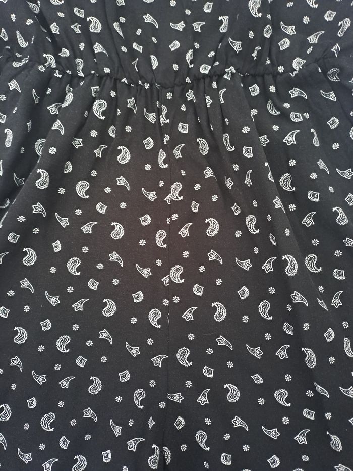 Combishort noire avec motifs fantaisie blancs en très bon état. Bretelles réglables. 12 ans