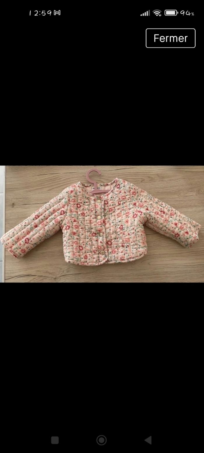 Jolie petite veste Fleurie. Taille 3 mois mais ma fille l'a porté jusqu'à 6 mois. Fermeture par pressions