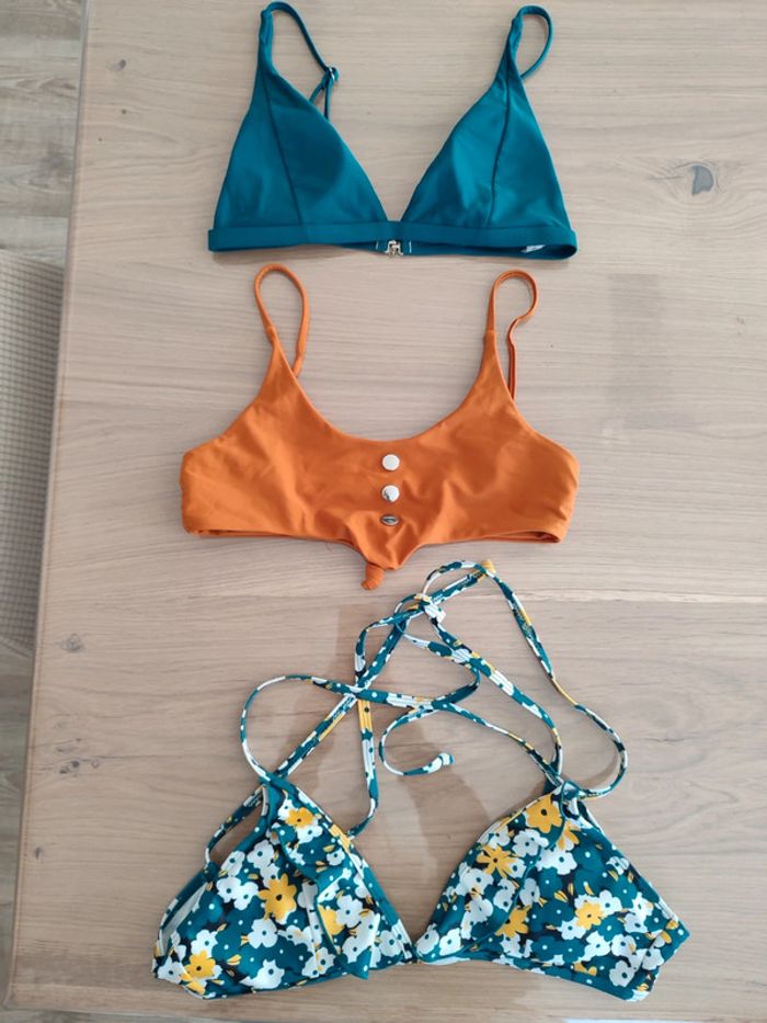 Trois hauts de maillot de bain en très bon état. Taille 38/M. S'accordent facilement avec différents coloris et formes de bas.