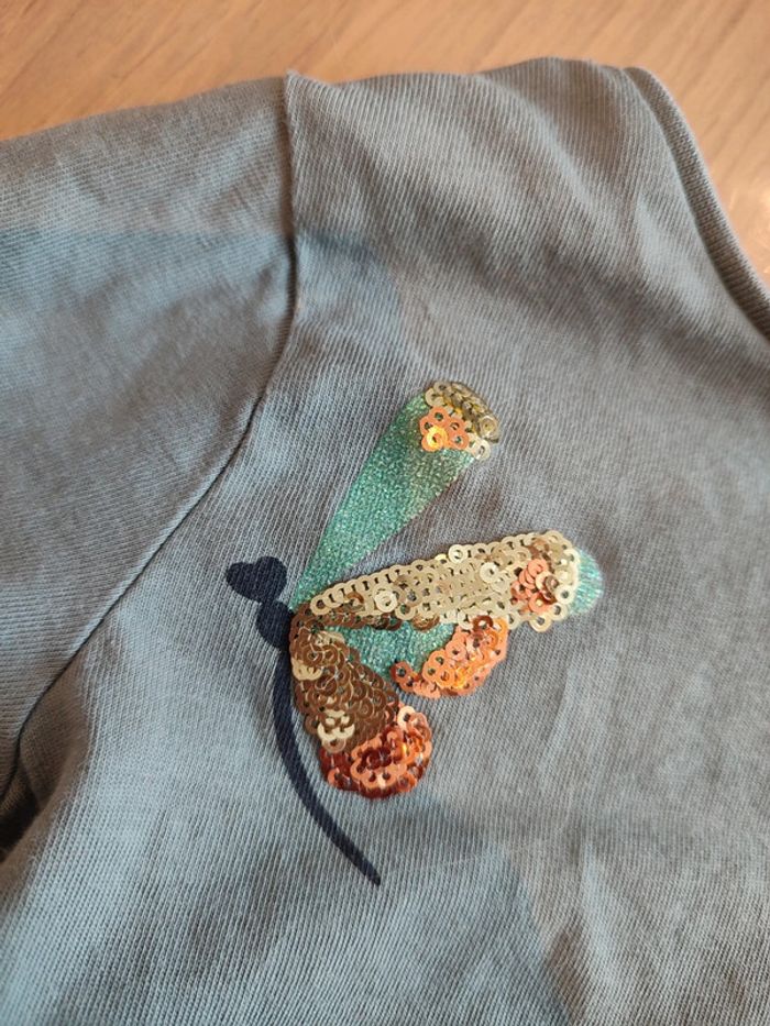 Tshirt girly avec petits papillons en sequins. Il est impeccable. Marque Verbaudet.