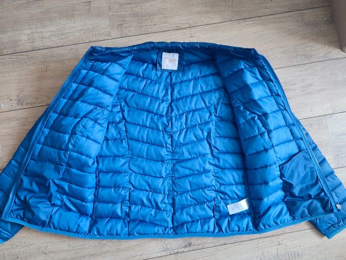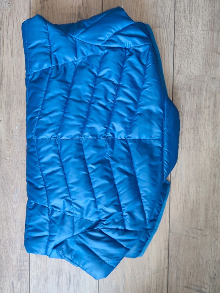 Doudoune bleu en parfait état. Idéale pour les journées fraîches. Fermeture zip et deux poches sur les côtés. Pas de capuche.