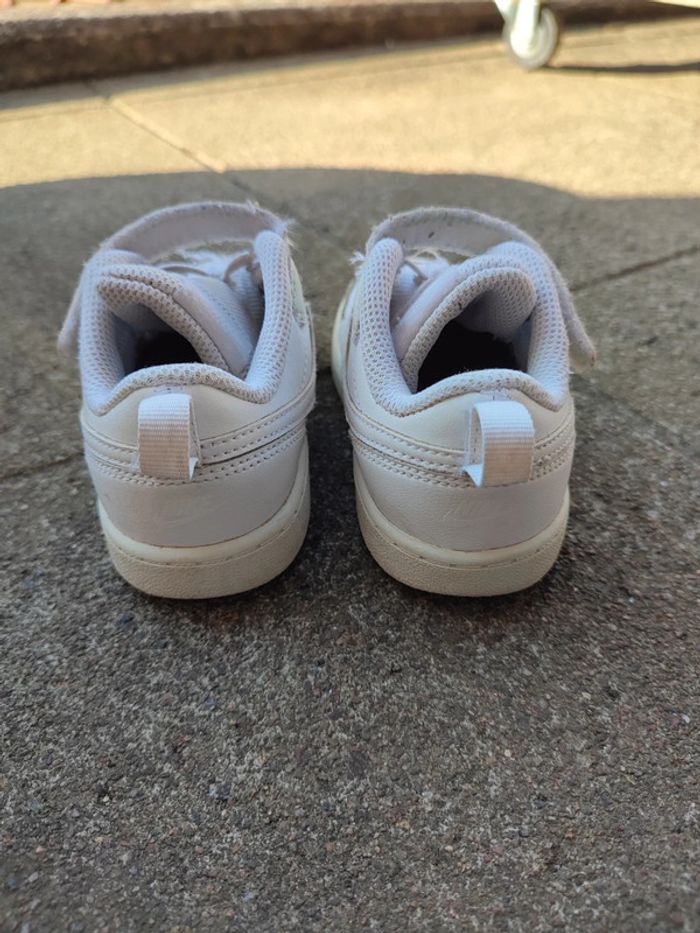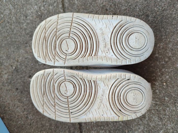 Baskets Nike blanches mixtes en très bon état quelques petites marques d'usure au niveau de la semelle. Elles ont été lavées pour la vente.