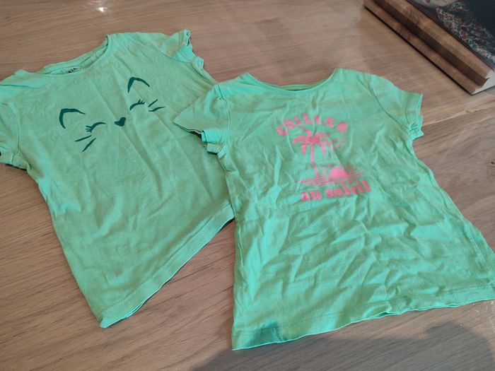 Deux t-shirt en taille 4 ans de chez Kiabi en coton. Ils sont en bon état un des deux t-shirt présente des petites taches très minime sur le devant (voir photo).