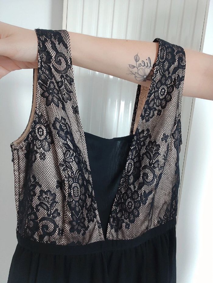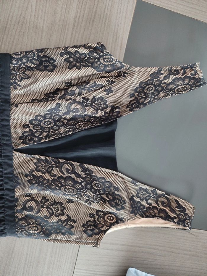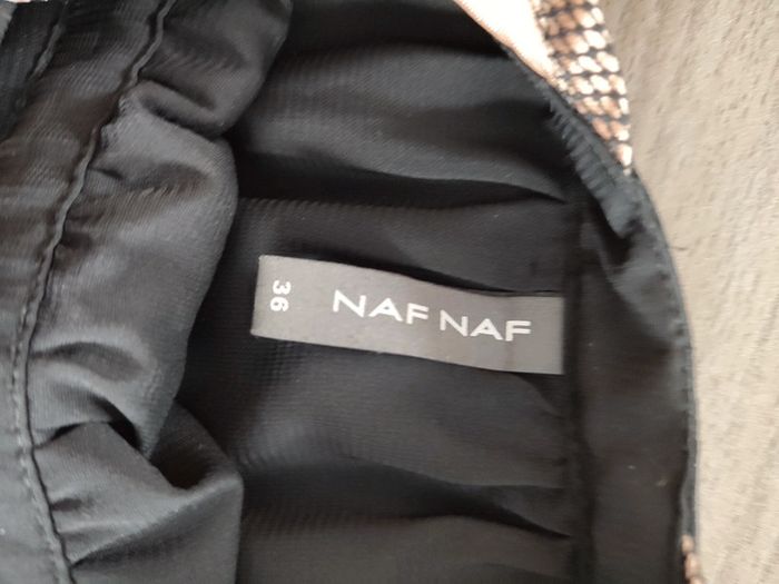 Magnifique robe de cocktail/ cérémonie Naf Naf. Taille 36. Portée quelques fois. En très bon état. Fermeture sur le côté du buste, invisible. Matière fluide en voile sur le bas. Bustier effet dentelle.