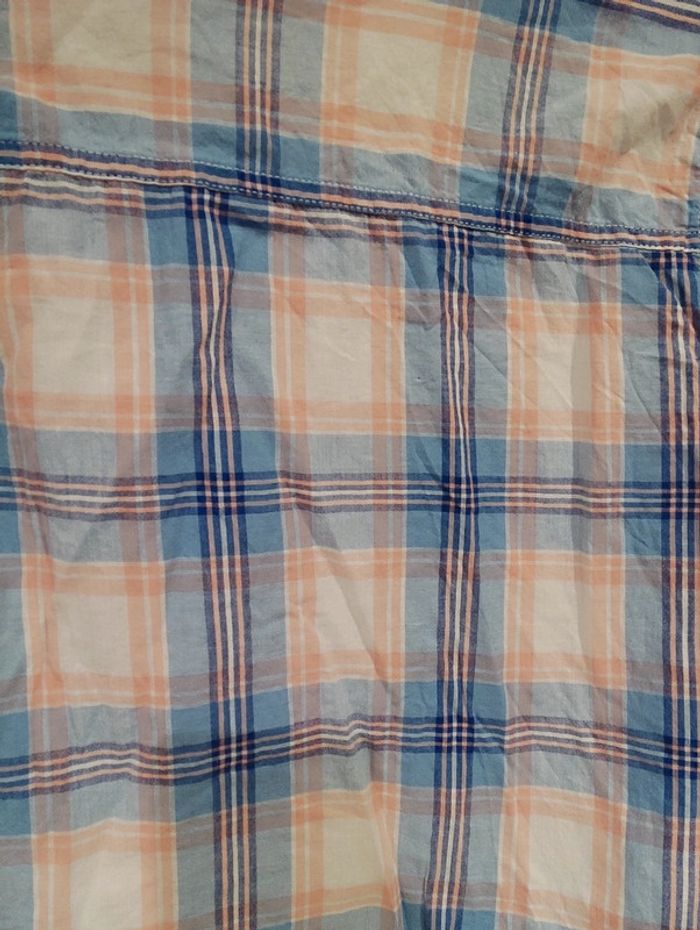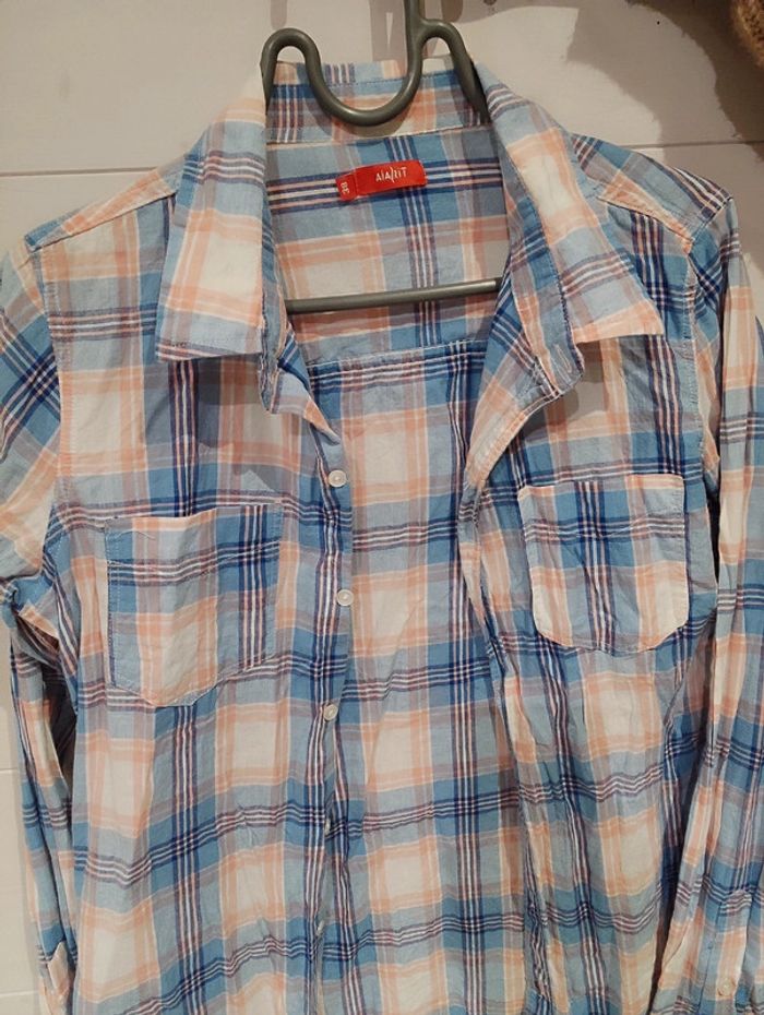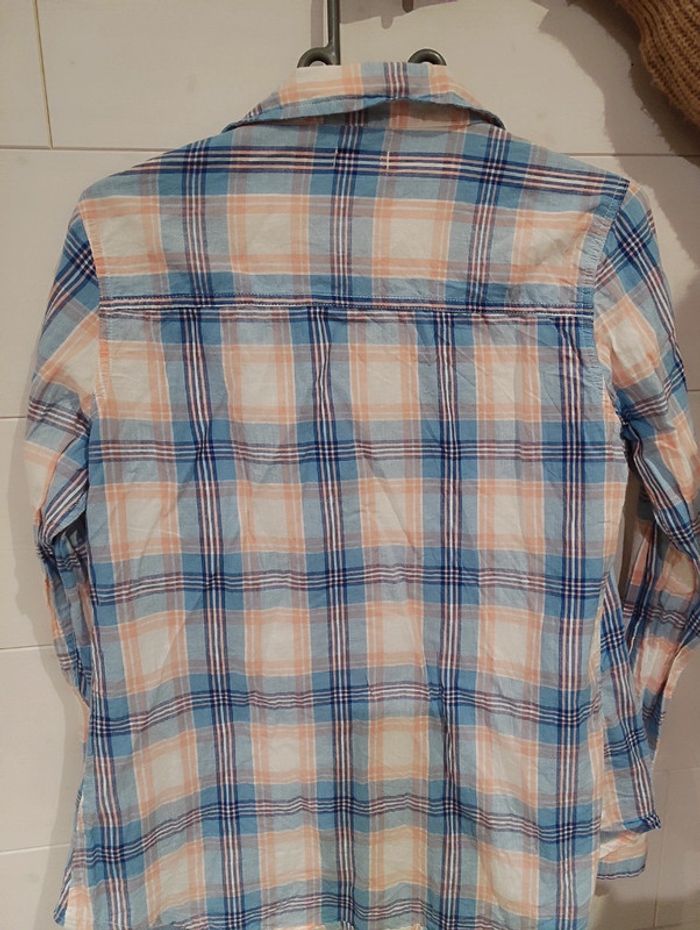 Chemise a carreaux en excellent état. Taille 38. Deux poches sur le devant. Coupe droite.