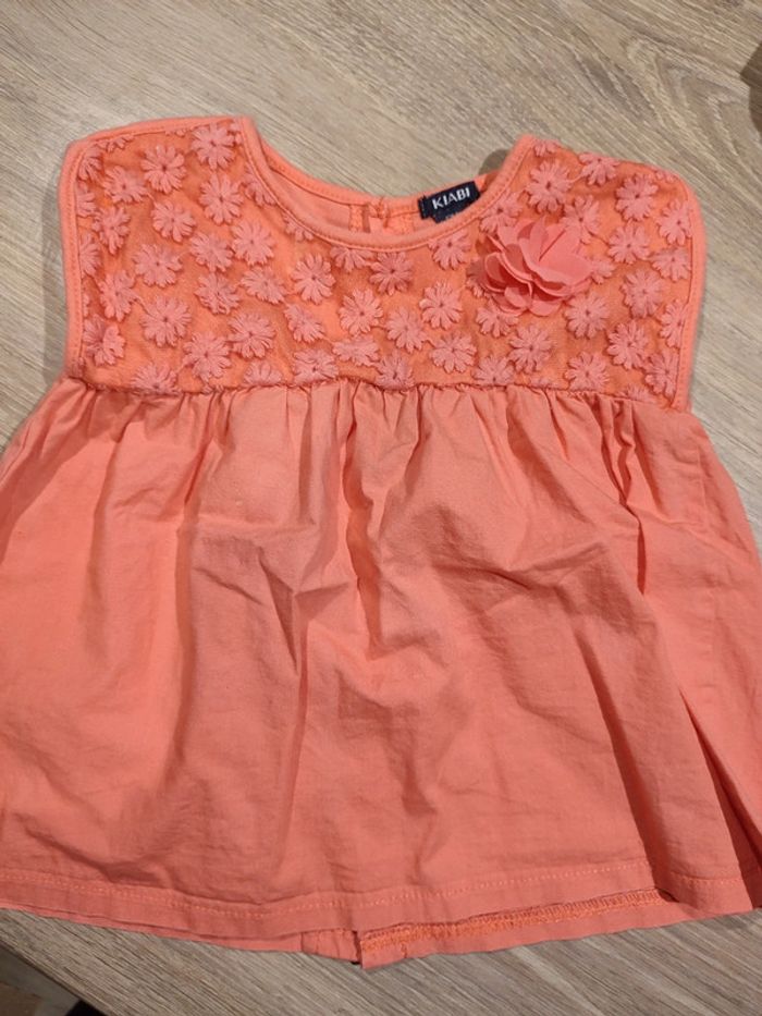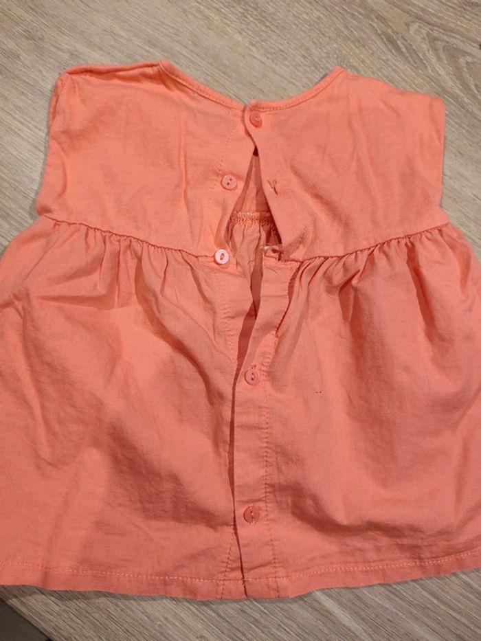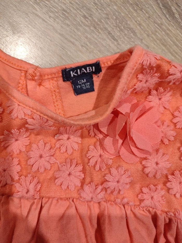 Joli t-shirt porté une seule fois. Taille 12 mois. Motifs fleurs en relief. Fermeture dans le dos.