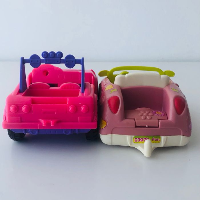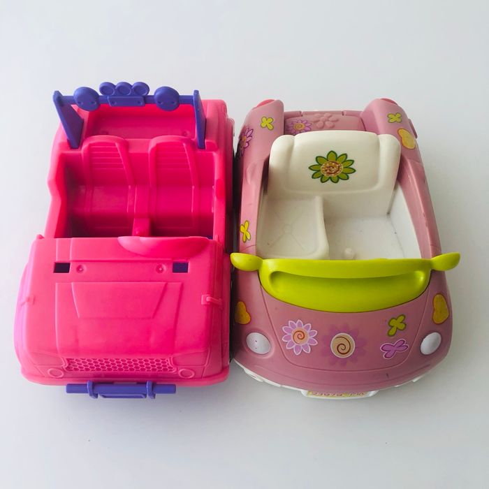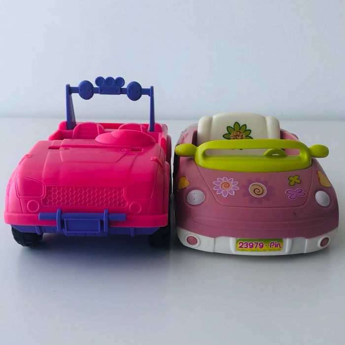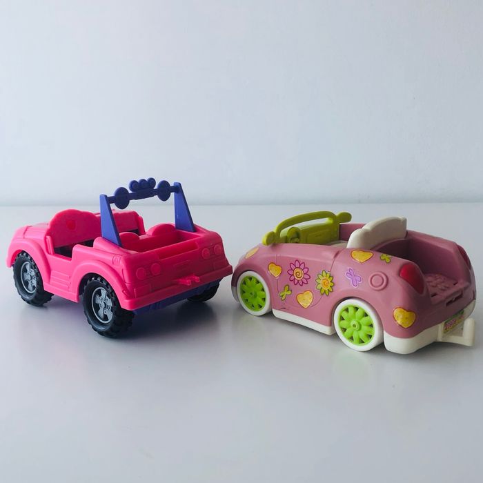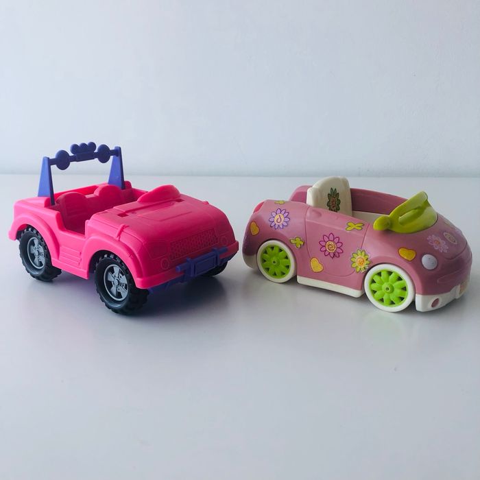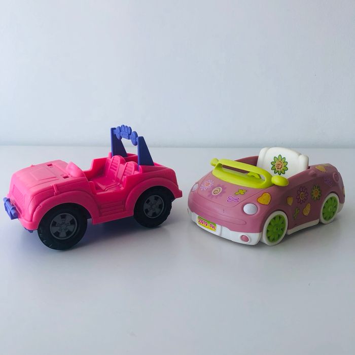 Je vends deux voitures pour poupée. Sur la rose il manque le volant et le pare brise.