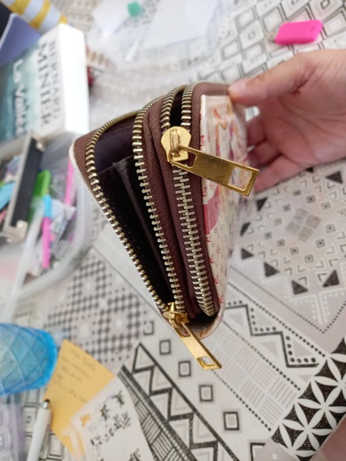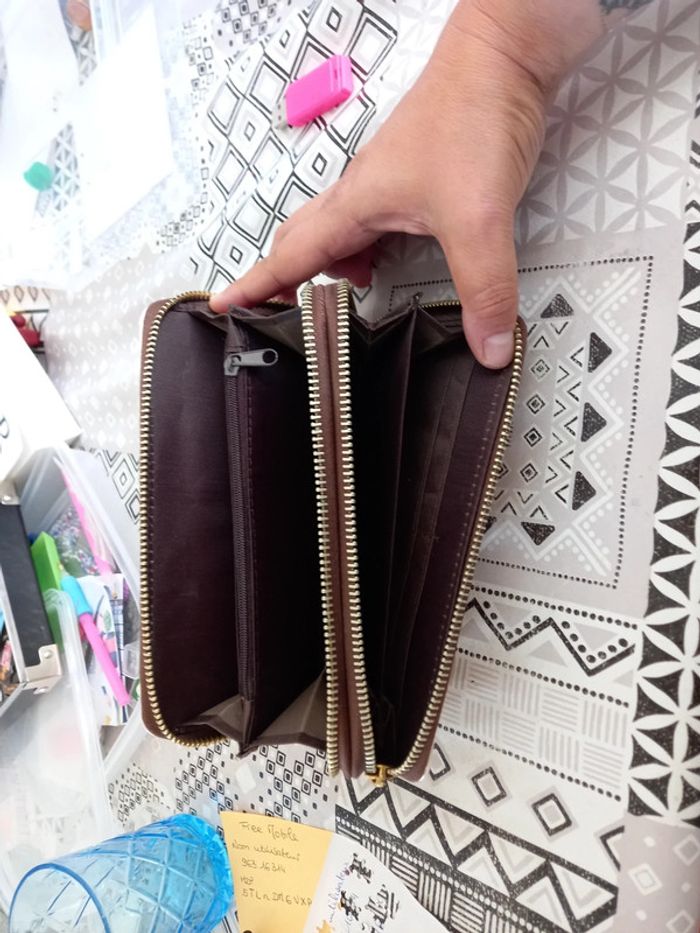 En très bon état proche du neuf. 2 poches zippée avec dans l'une une petite pochette pour la monnaie et dans l'autre un emplacement pour les cartes. Hyper pratique pour tout avoir à portée de main😉 #feuilloley86accessoires #portefeuille #portecarte