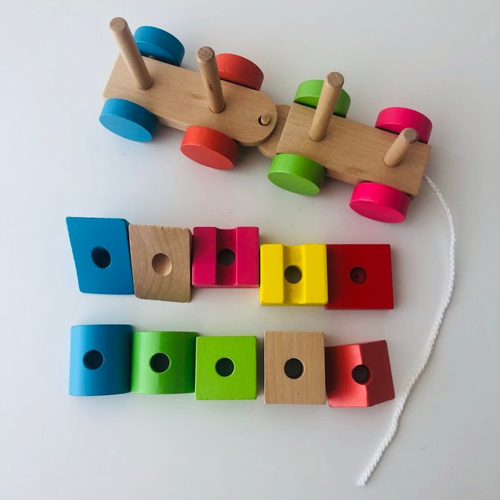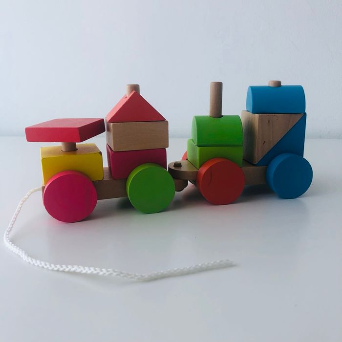 Je vends un train à tirer en bois avec 10 pièces et empiler, en très bon état, excepté peinture un peu partie par endroit.