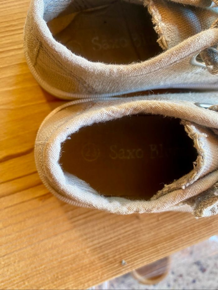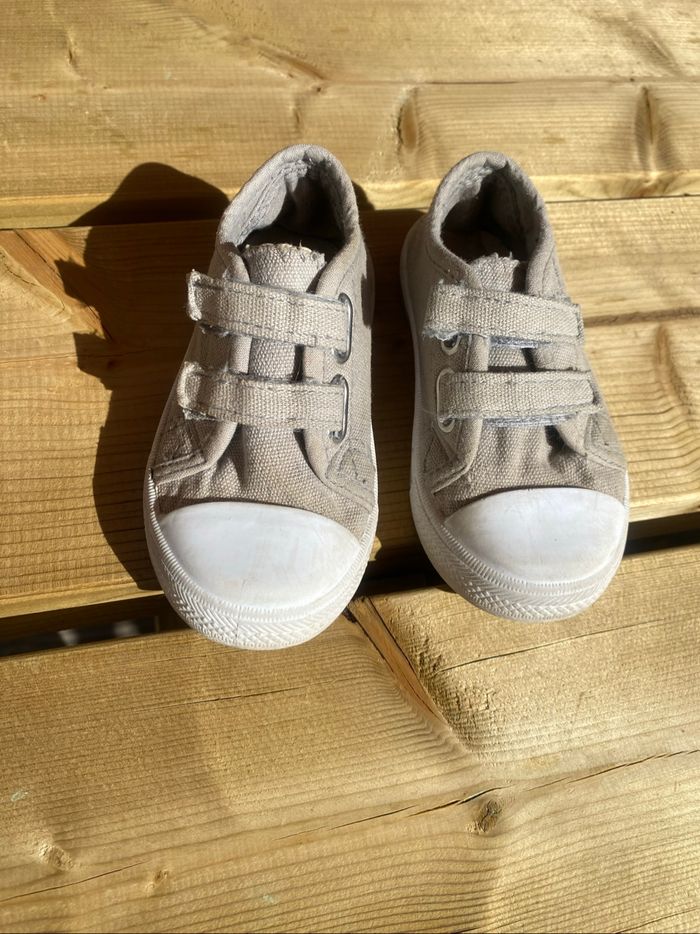 Semelle blanche Toile grise Doubles scratchs Petits défauts mais très bon état général Type converse