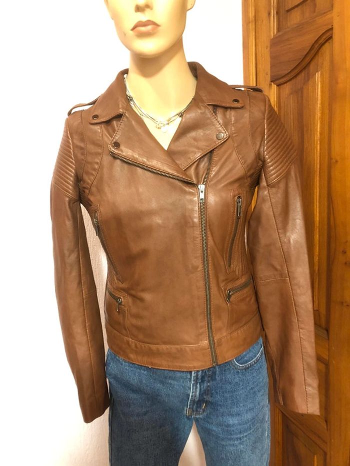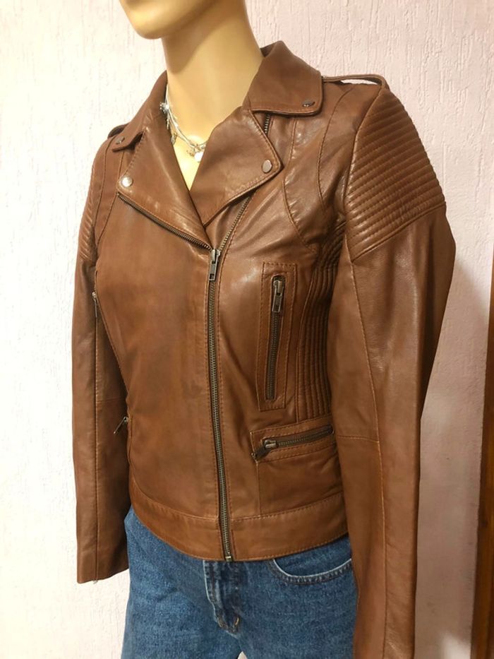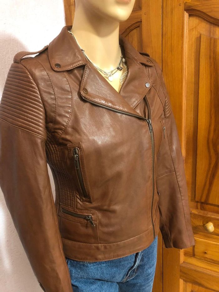 Veste brune / marron / brun en cuir d'agneau Naf Naf style veste biker taille 36, Naf Naf neuve avec étiquette (valeur 179,99€) #Mllenafnaf_nafnaf #Mllenafnaf_veste #nafnaf
